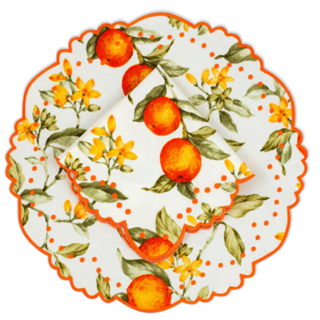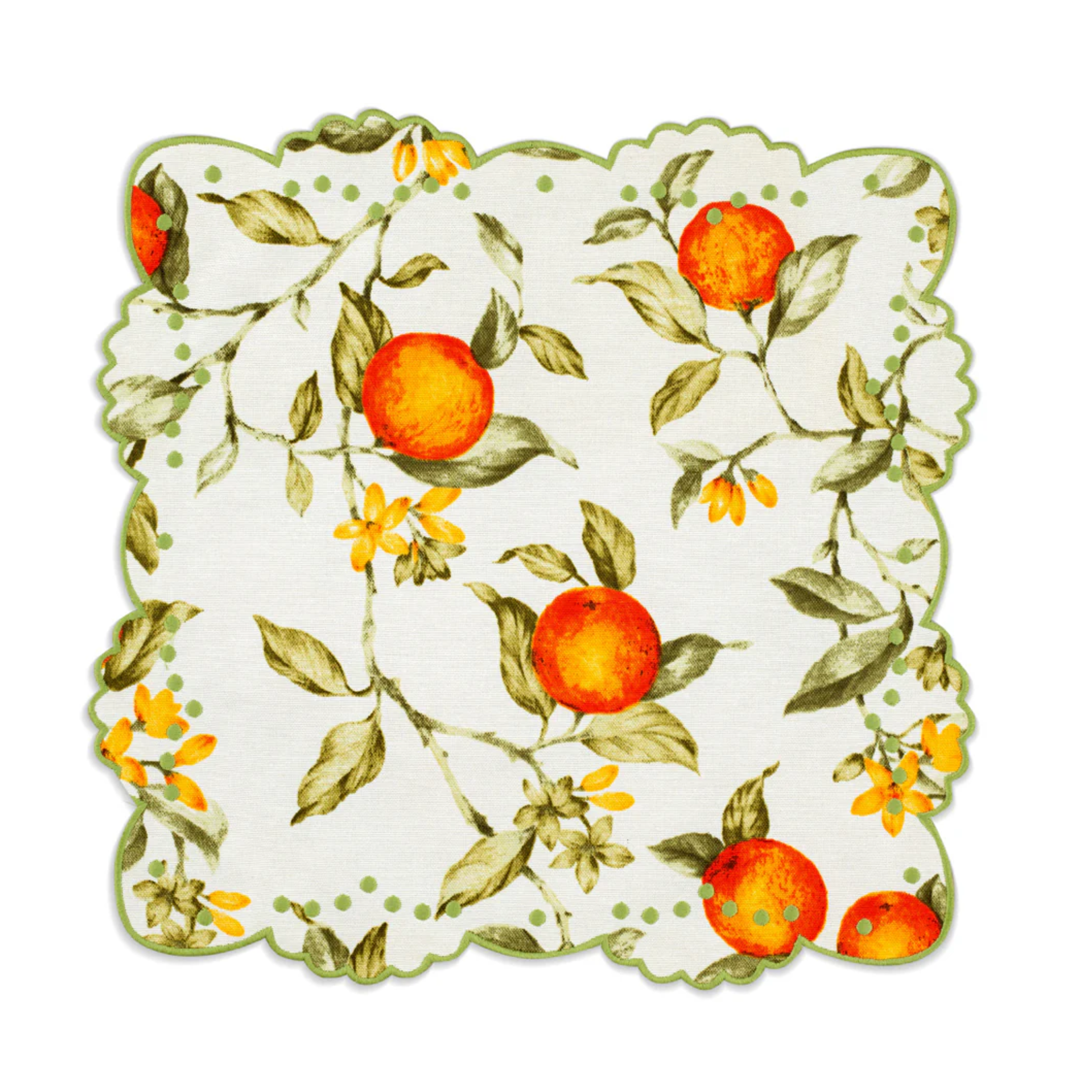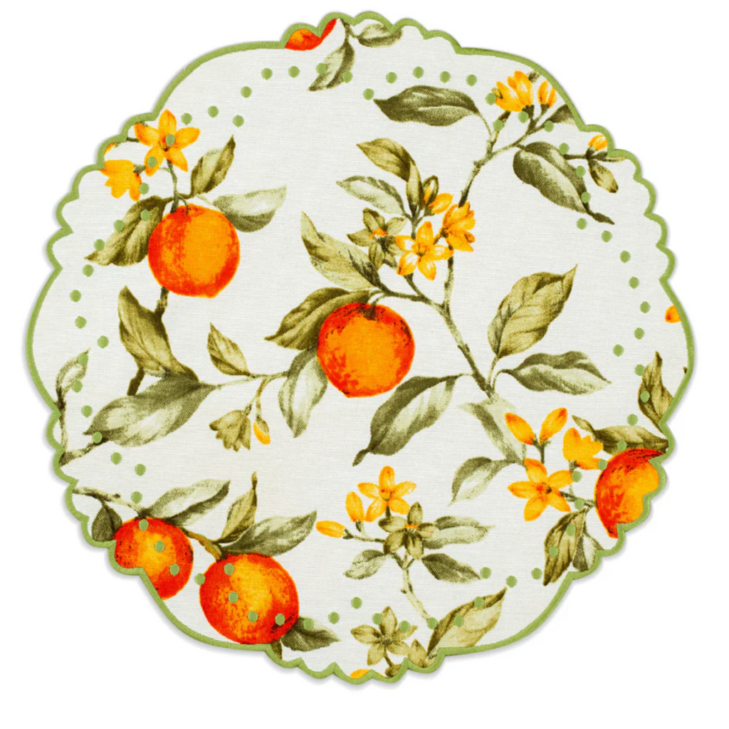 This embroidered, liquid resistant citrus placemat and napkin set make hosting a breeze. The orange embroidered trim is a beautiful detail. Set includes 1 of each. This item is final sale and is not eligible for return. Click images for greater detail.