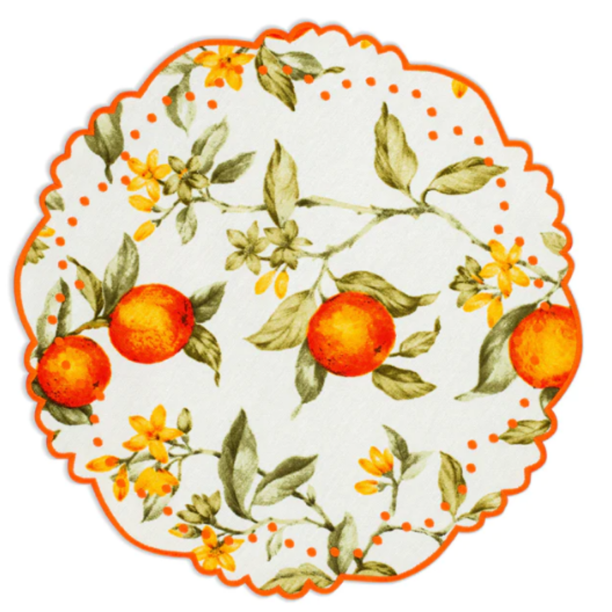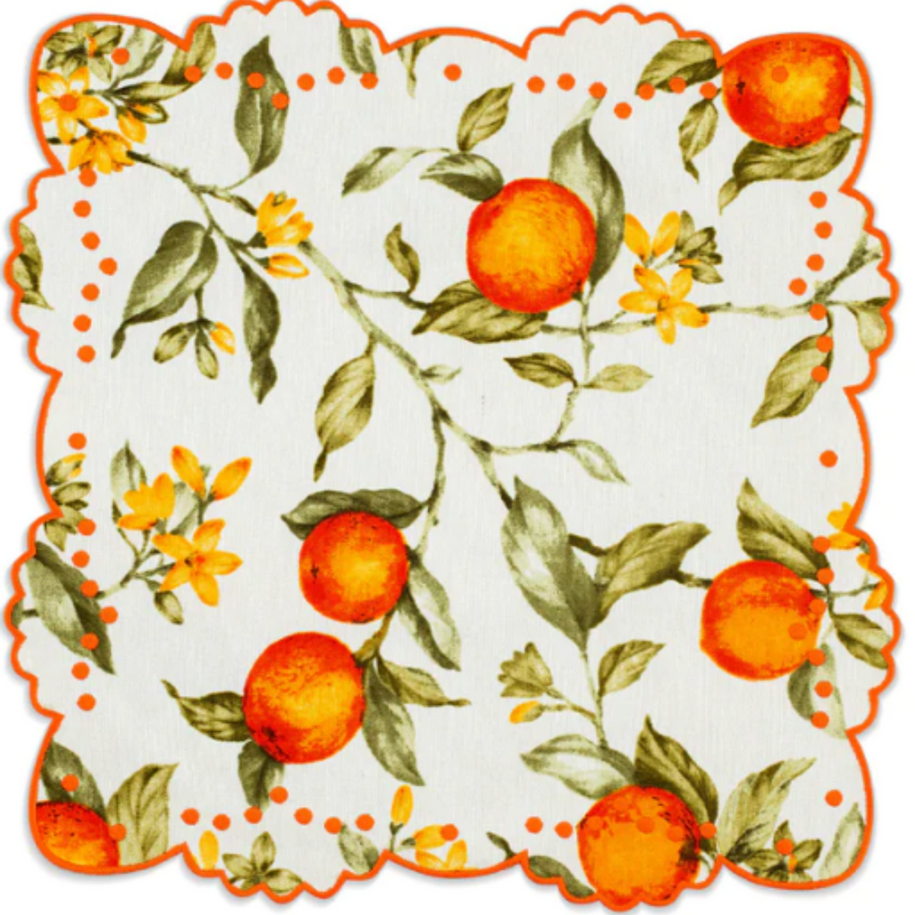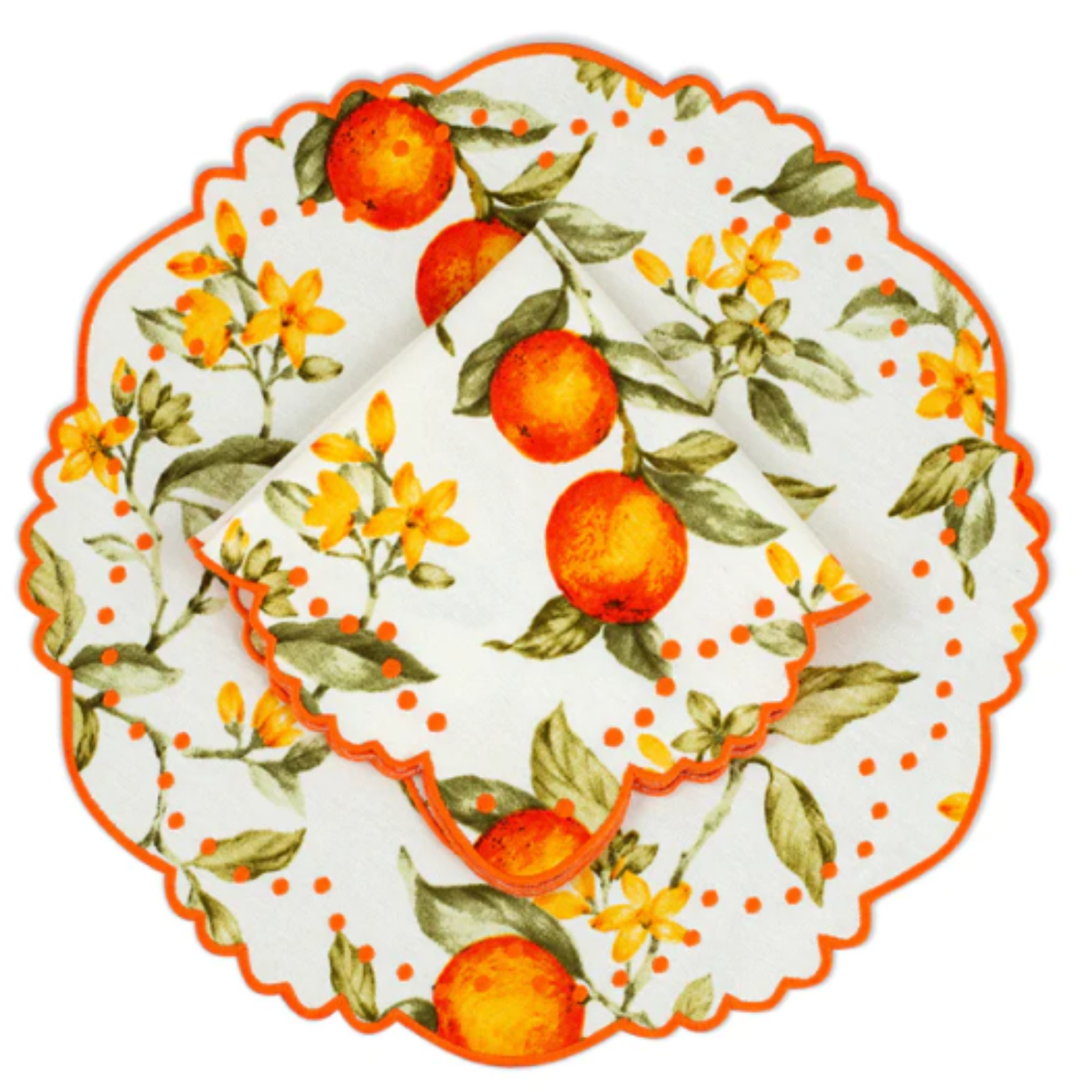 This embroidered, liquid resistant citrus placemat and napkin set make hosting a breeze. The orange embroidered trim is a beautiful detail. Set includes 1 of each. This item is final sale and is not eligible for return. Click images for greater detail.