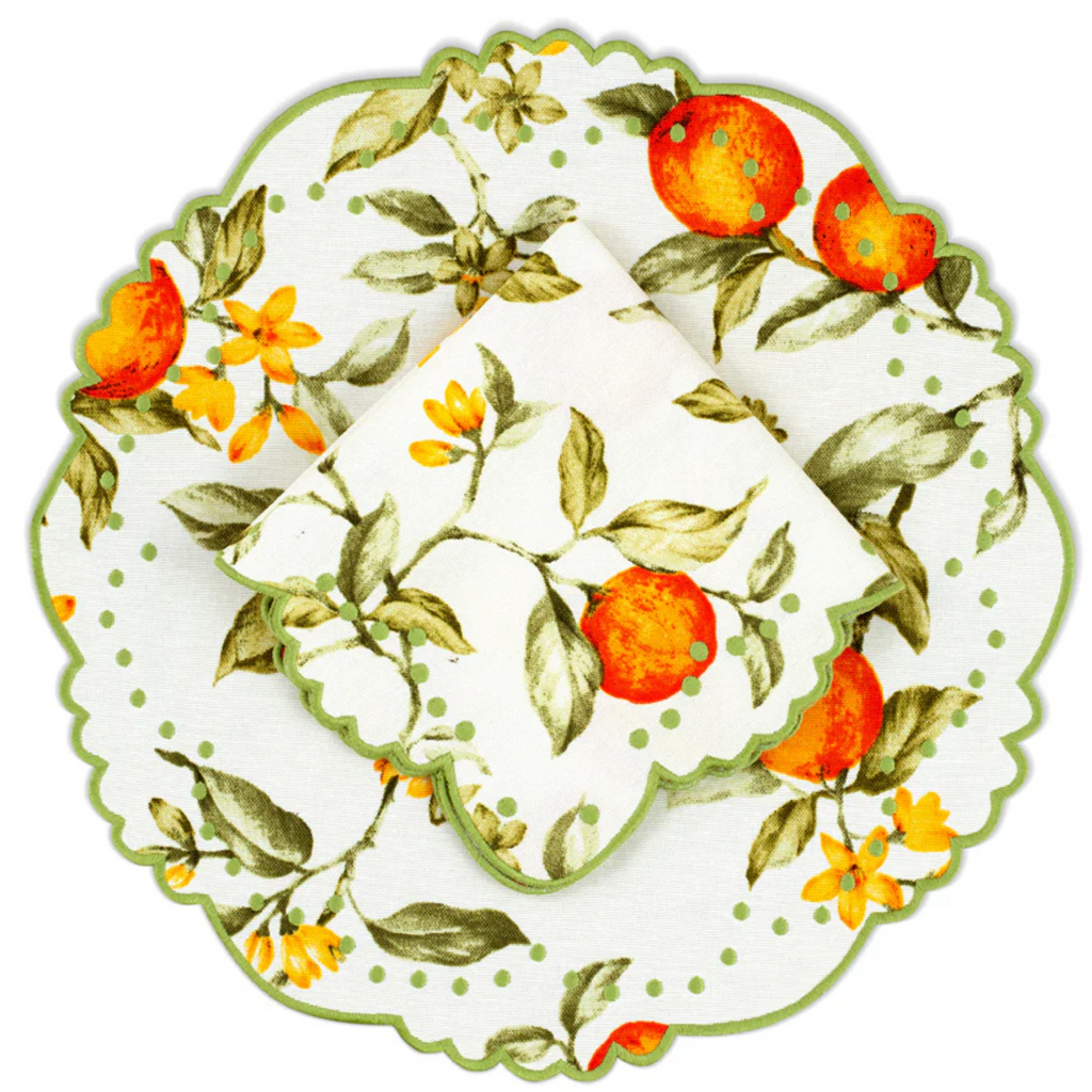 Berenice Citrus Embroidered Placemat & Napkin Set