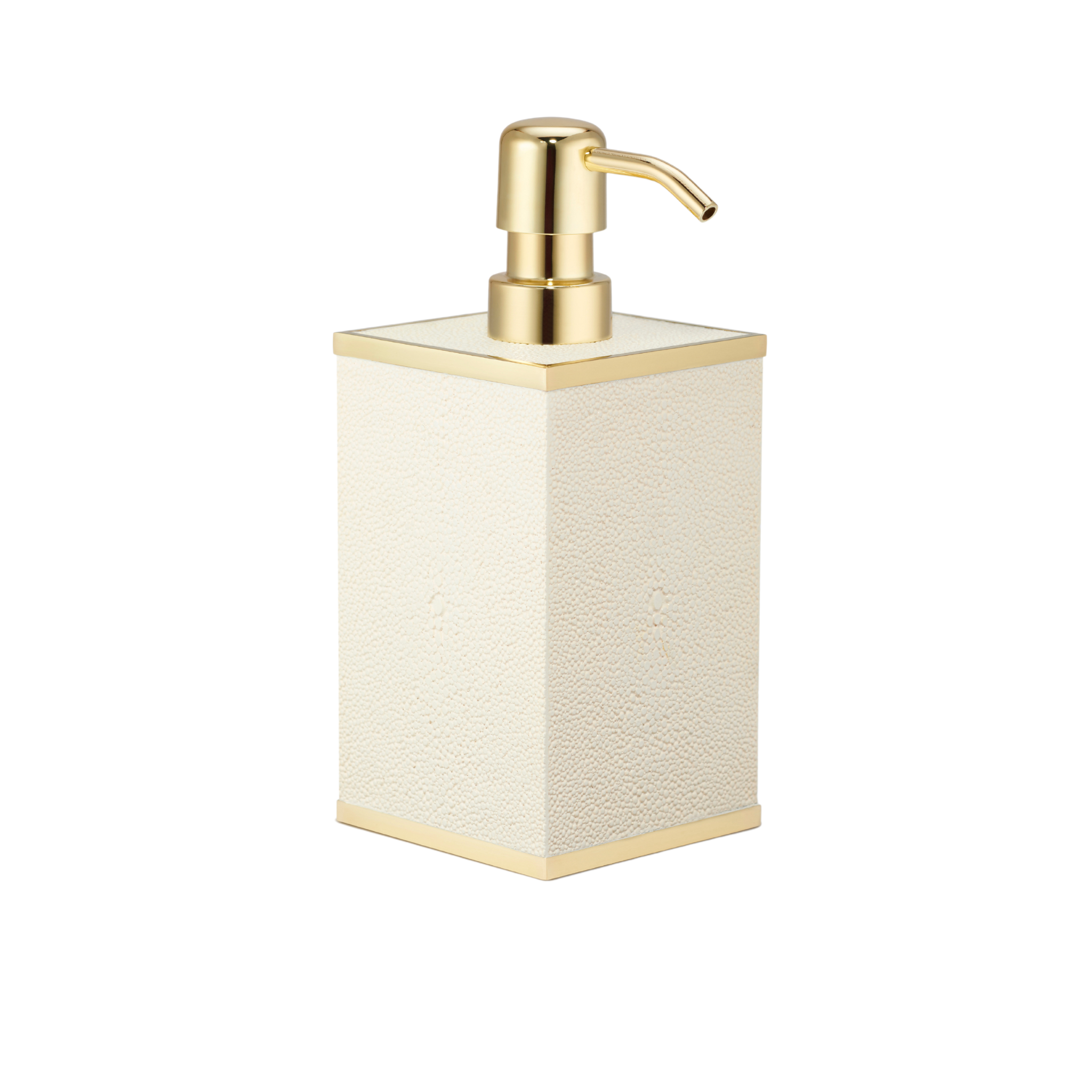 Keep a bathroom organized and tidy with this soap pump in elegant shagreen. It is further enhanced with gold-plated detailing.
