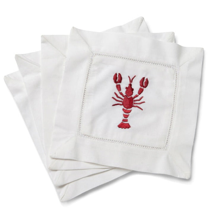 Cocktail Napkins in Red with Lobster Design, Set of 4