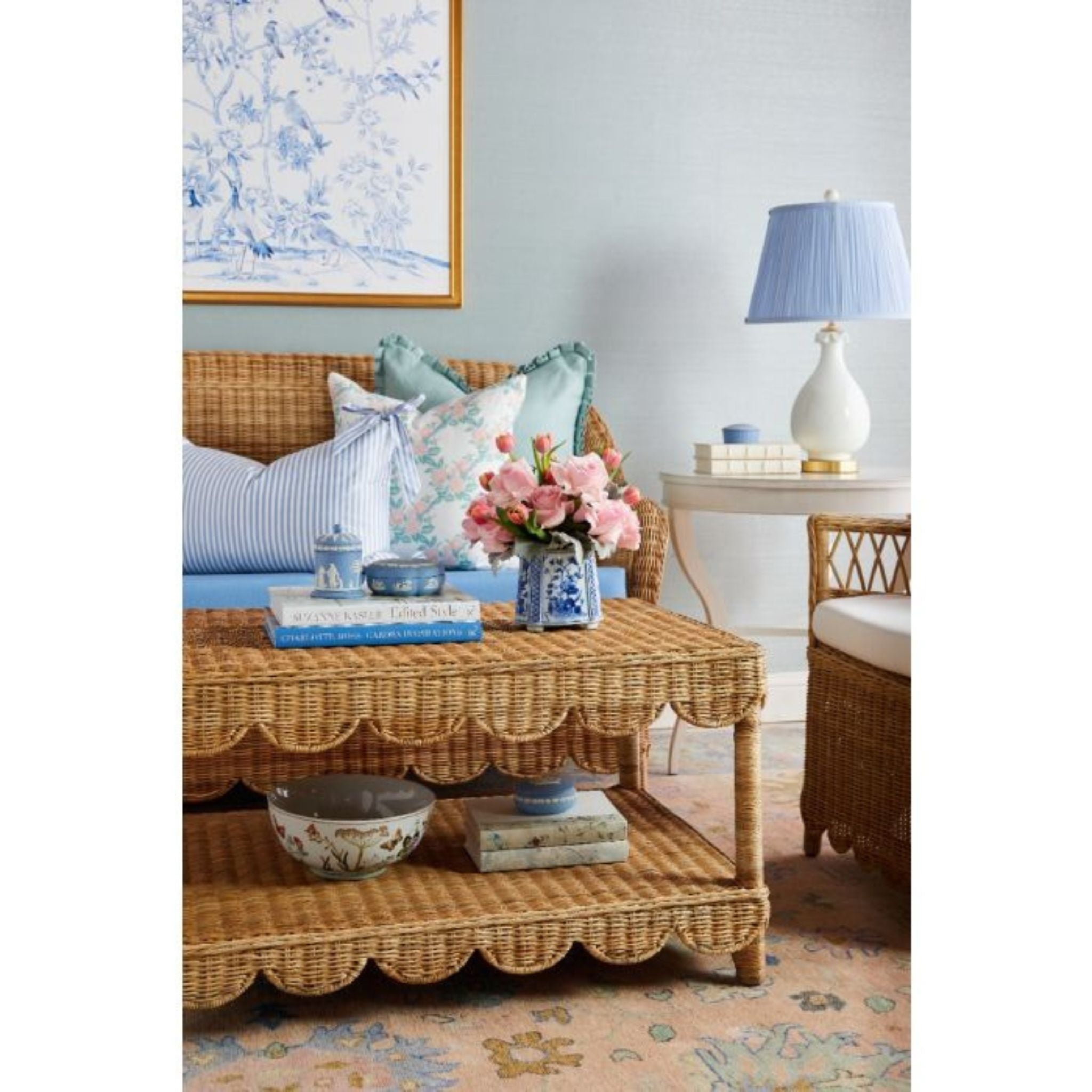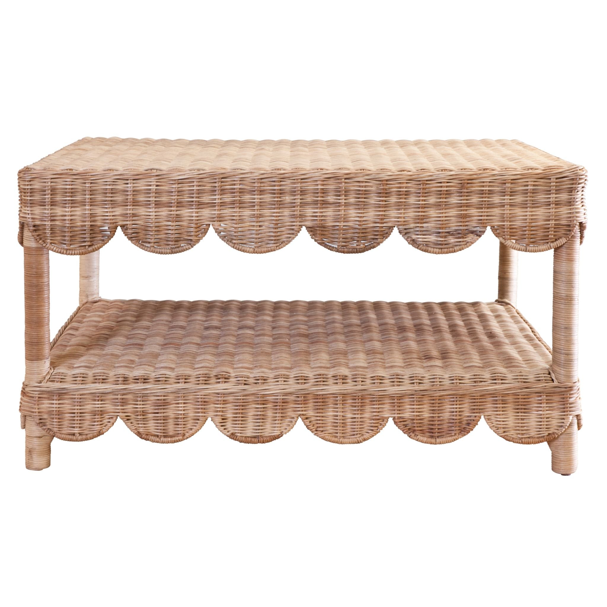 Handwoven from durable rattan, the Coco Cocktail Table features scalloped edges and two-tiered shelving, blending timeless design with functional elegance. It's a versatile centerpiece that complements both coastal and contemporary interiors.