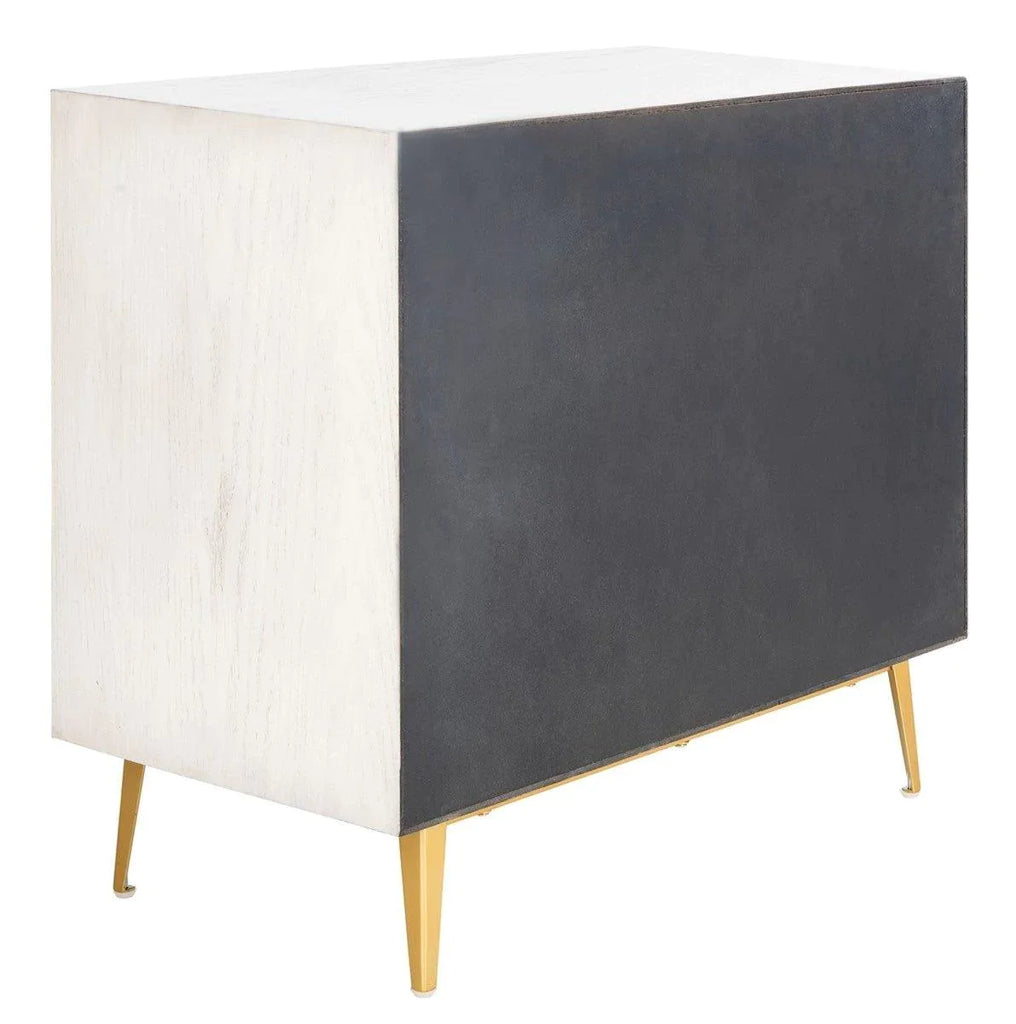 Contemporary 3 Drawer Chest in Whitewash With Gold Legs