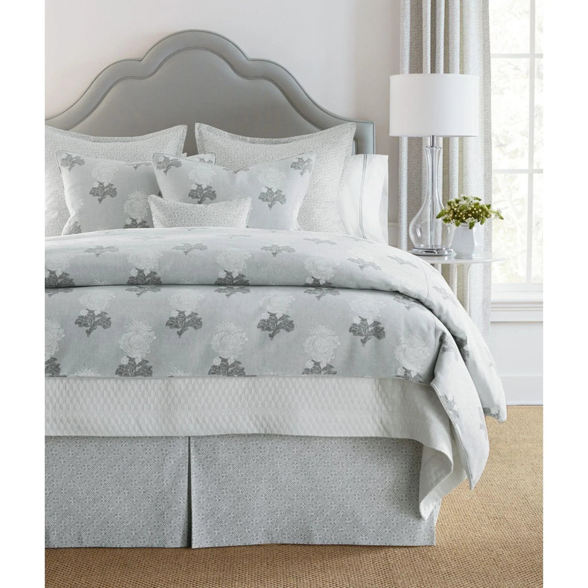 The Aldith Floral Bedding comes in a simple yet sweet design and is Aldith is available in three colors: Grey (shown), Aqua and Blue.
