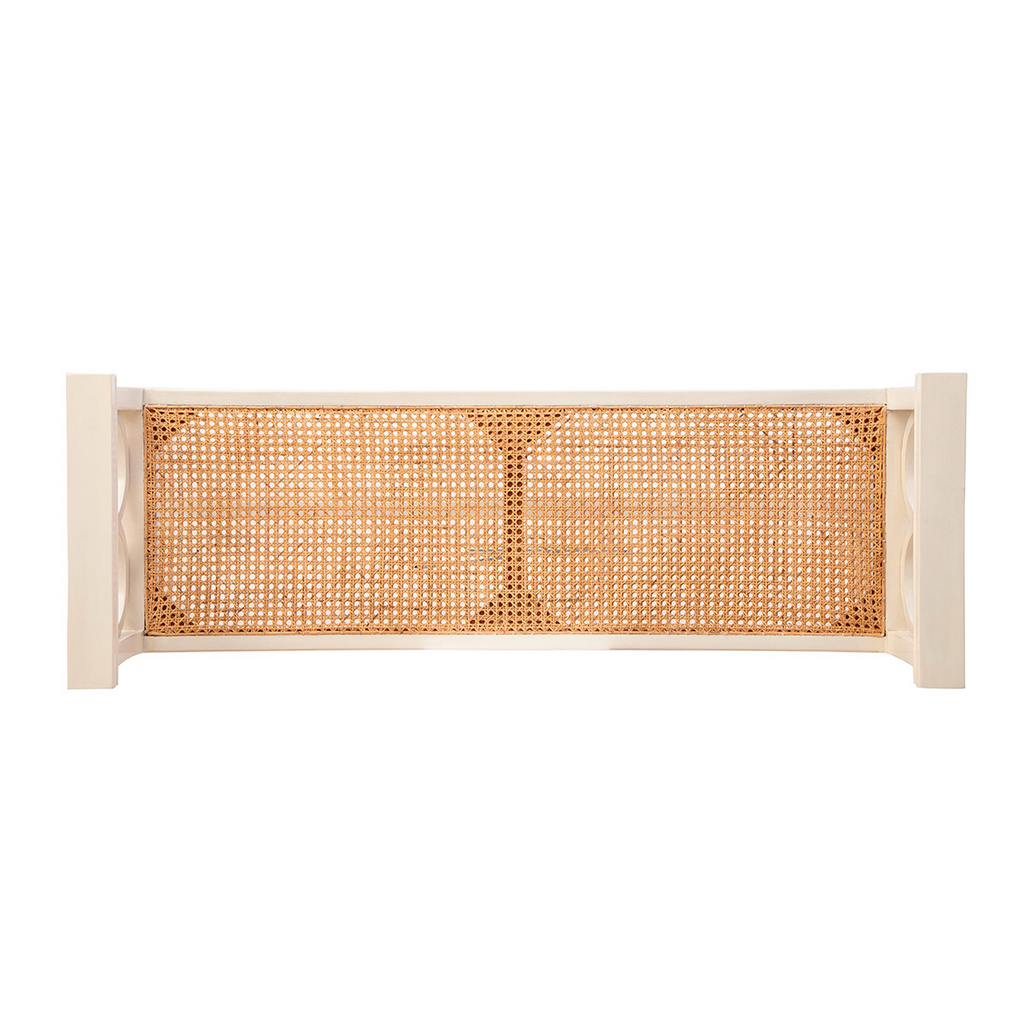 The Cream Circles Bench blends modern design with old-world charm. Its solid wood frame, finished in a creamy white, contrasts beautifully with the cane seating, offering both style and texture. Perfect for an entryway, the foot of a bed, or additional seating in a dining room or living space, this bench adds timeless elegance to any room while remaining versatile and functional.