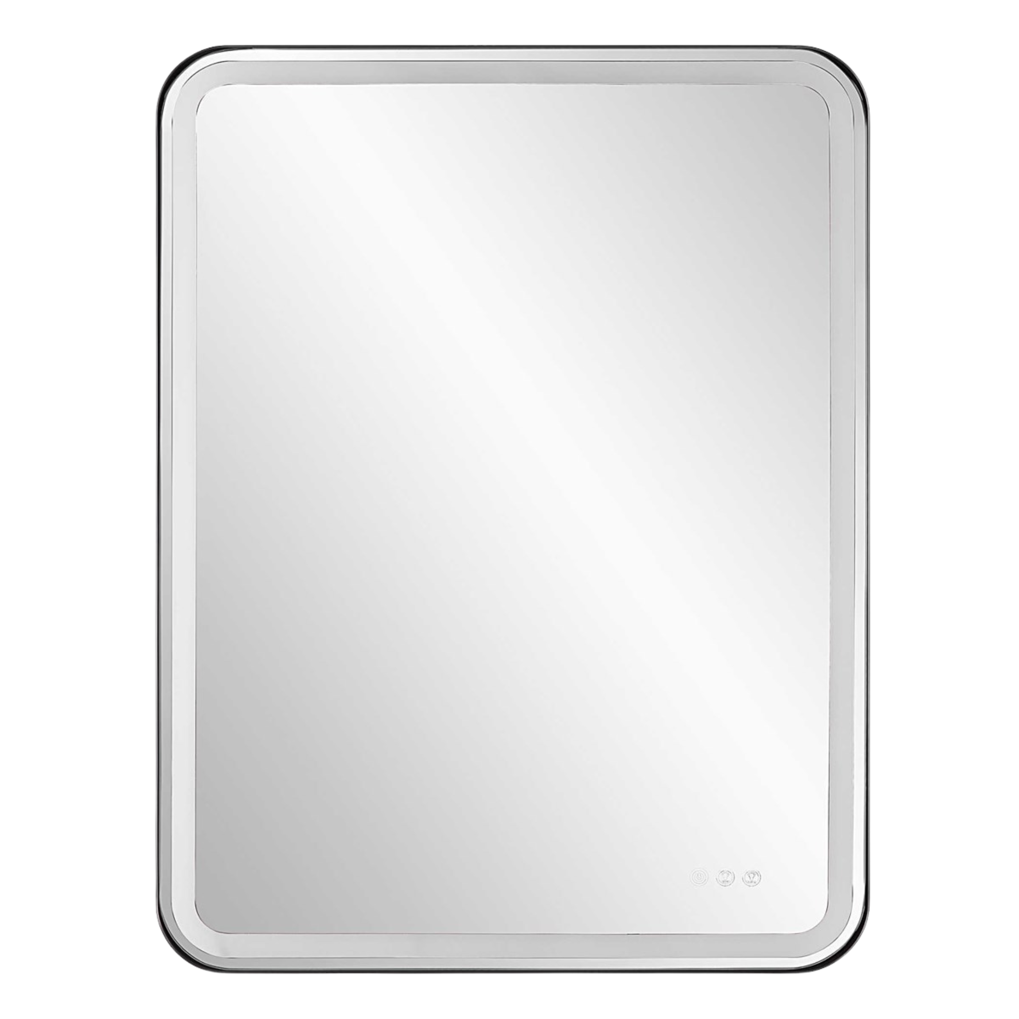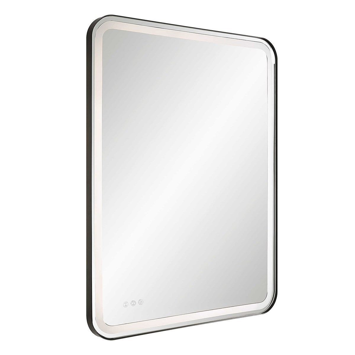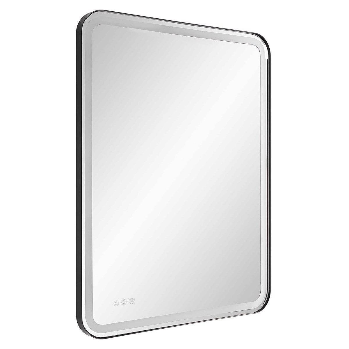 Versatile in design, this mirror has integrated LED lighting that illuminates through the frosted strip in the polished edged mirror. The metal frame is finished in a satin black and is off set from the wall to allow ambient lighting from the back. Easy to use touch buttons are featured on the bottom right of the mirror with an on off function, touch and hold kelvin control from 2700k to 4000k, and touch and hold brightness control. LED lights rated at 40,000 hours. Ships with plug, but can be hardwired professionally. Touch screen icons continue to illuminate when powered off for easy navigation in dark settings.
