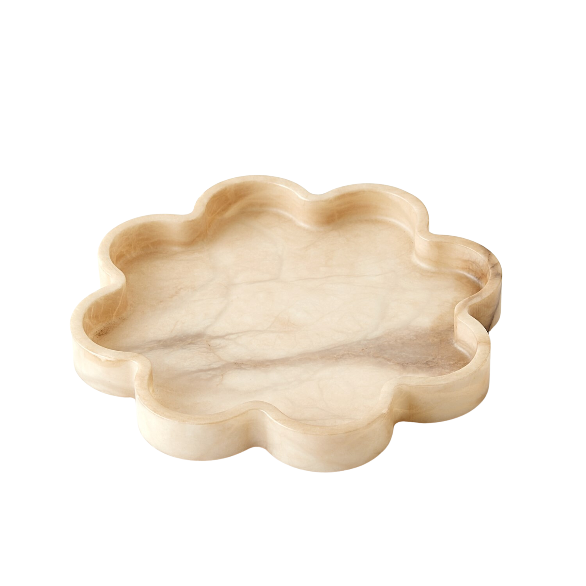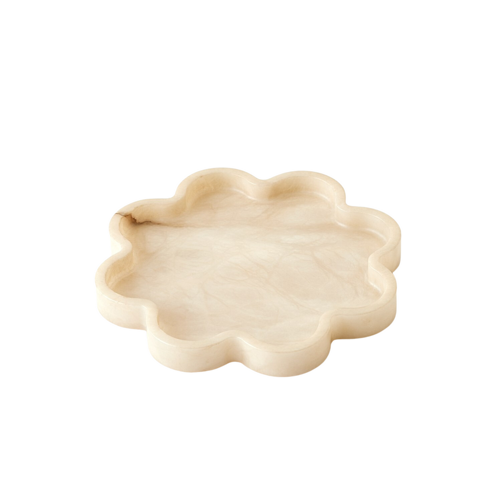 The Cumulus Trays are thoroughly handcrafted from the finest Italian alabaster, with each piece undergoing a meticulous staining process to achieve an ivory cream hue. The result is a collection of trays that provide both beauty and functionality. As alabaster is a natural product, please be aware that there will always be variations in veining and color. This is to be expected and makes every alabaster product uniquely your own.