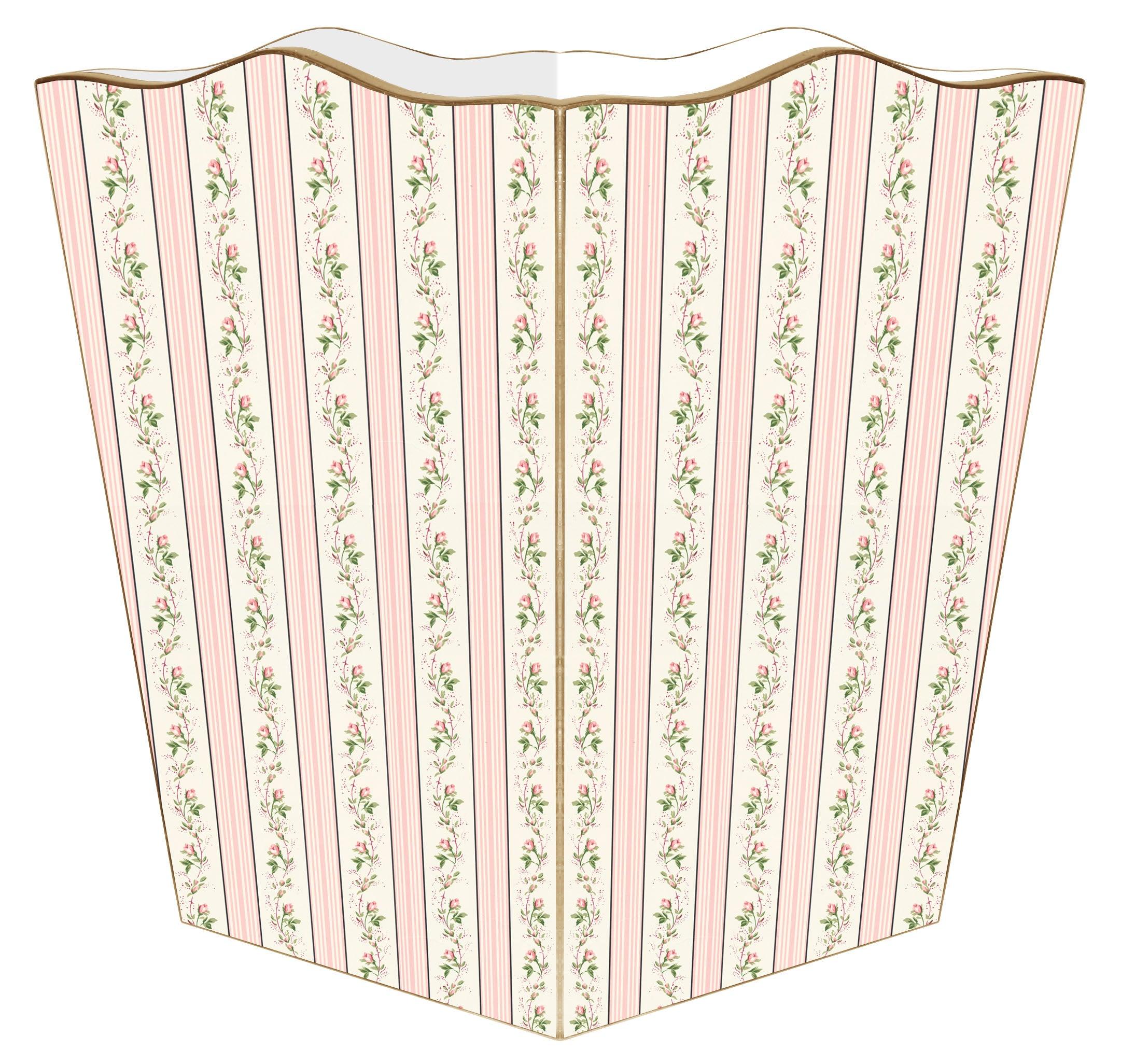Dainty Rose Stripe Wastebasket and Optional Tissue Box Cover, Can Be Personalized