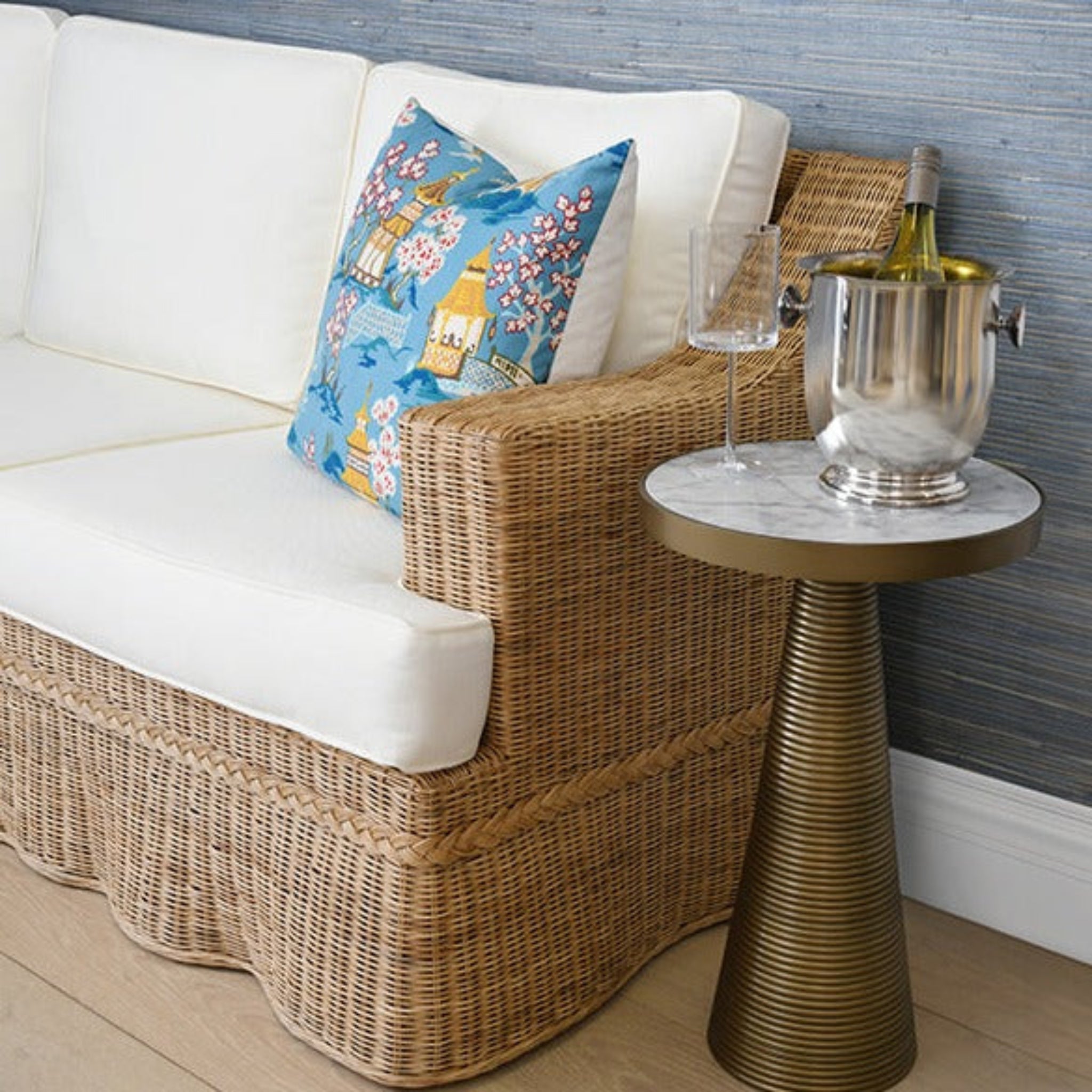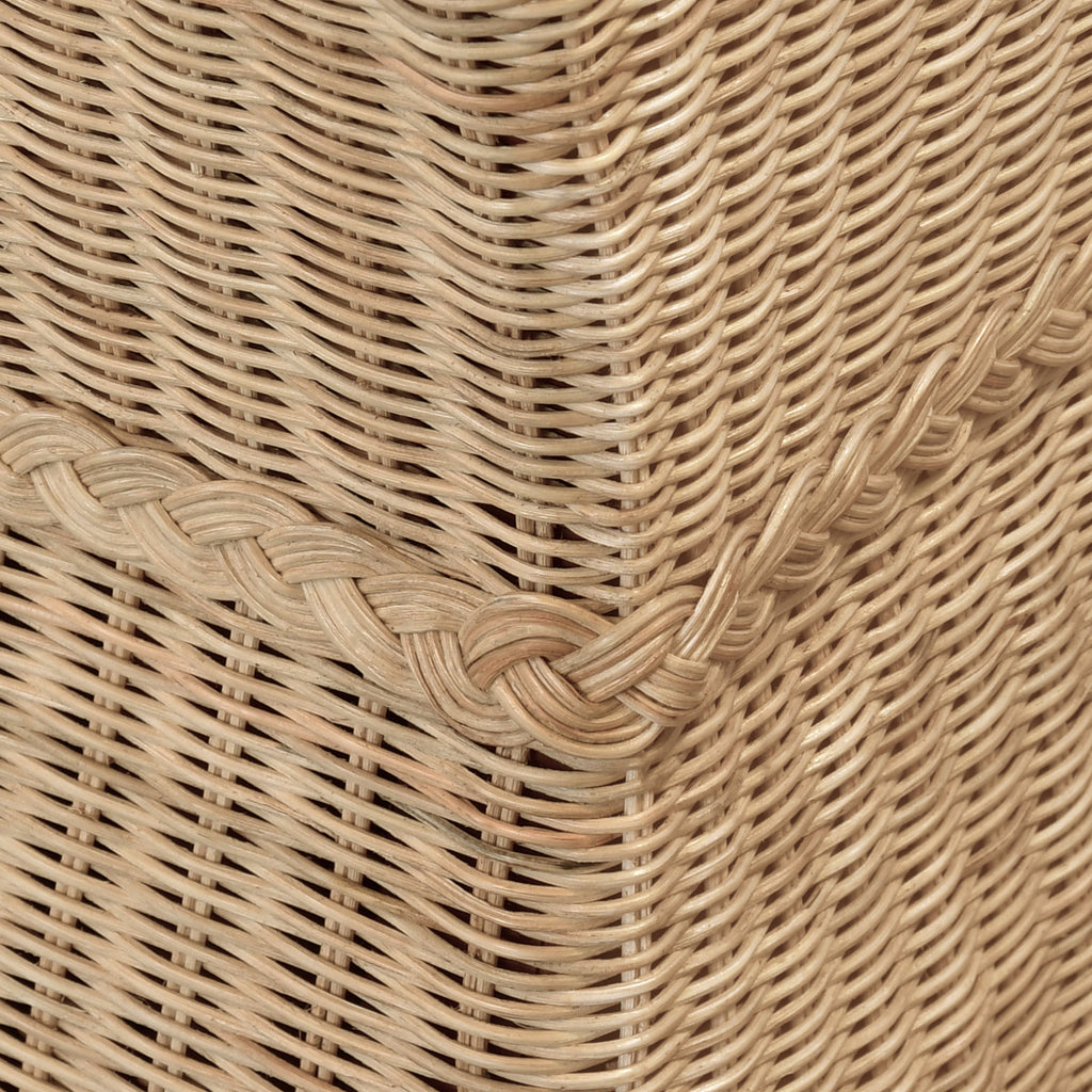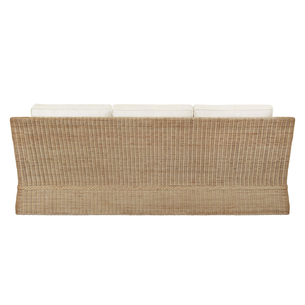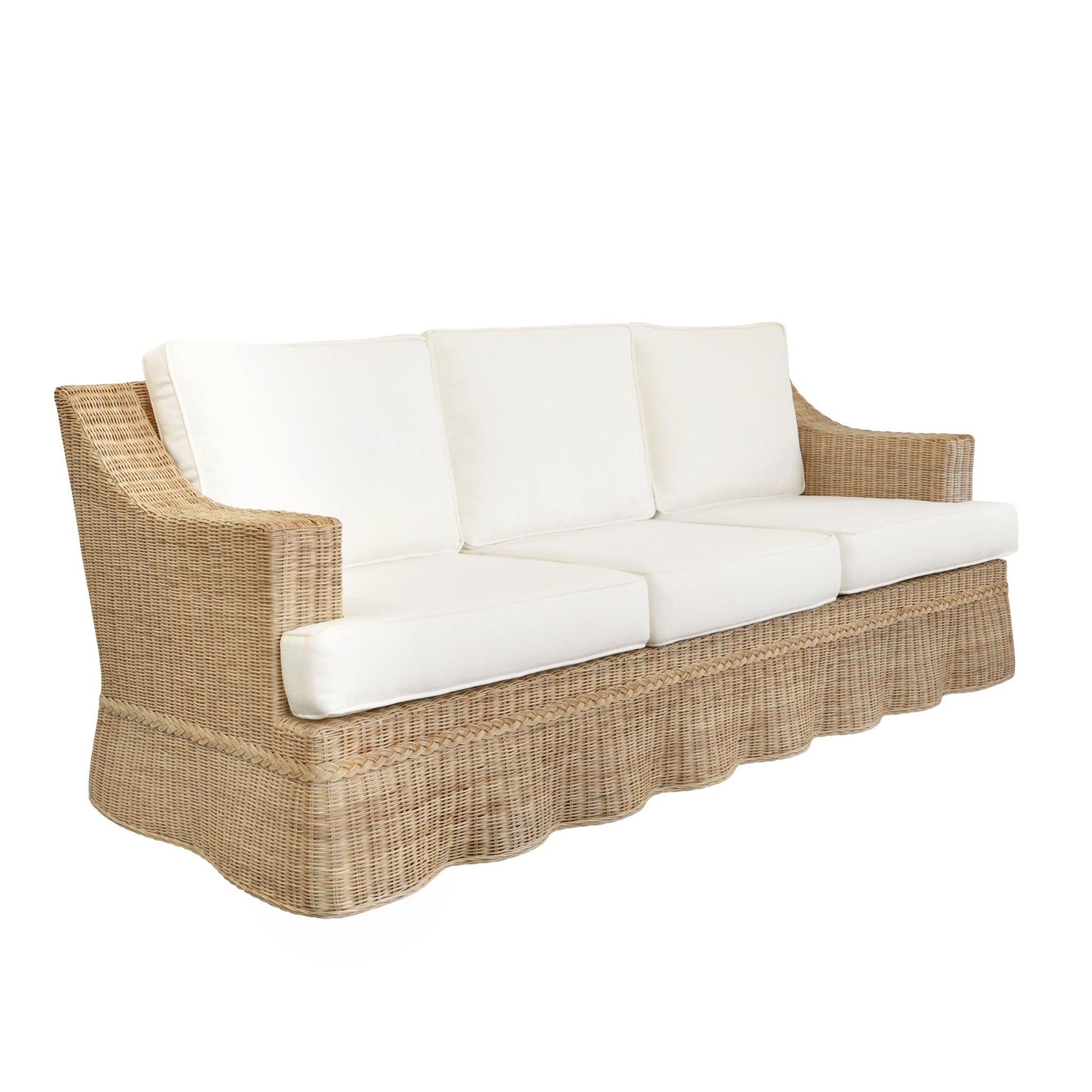 Elevate the ambiance of your living room with our exquisite Daphne Sofa! Designed in the beloved Lawson style, this sofa features a stunning natural rattan frame that exudes a touch of rustic charm. The intricately crafted scalloped skirt adds a unique flair to its design, while the plush ivory linen cushions ensure both style and comfort.