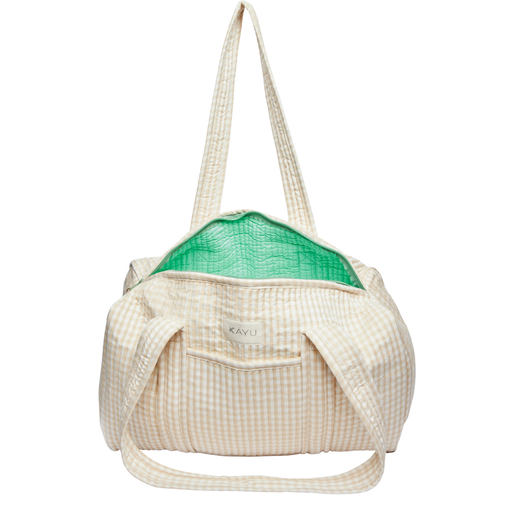 Daphne Travel Weekender Zip Tote Bag in Beige Gingham