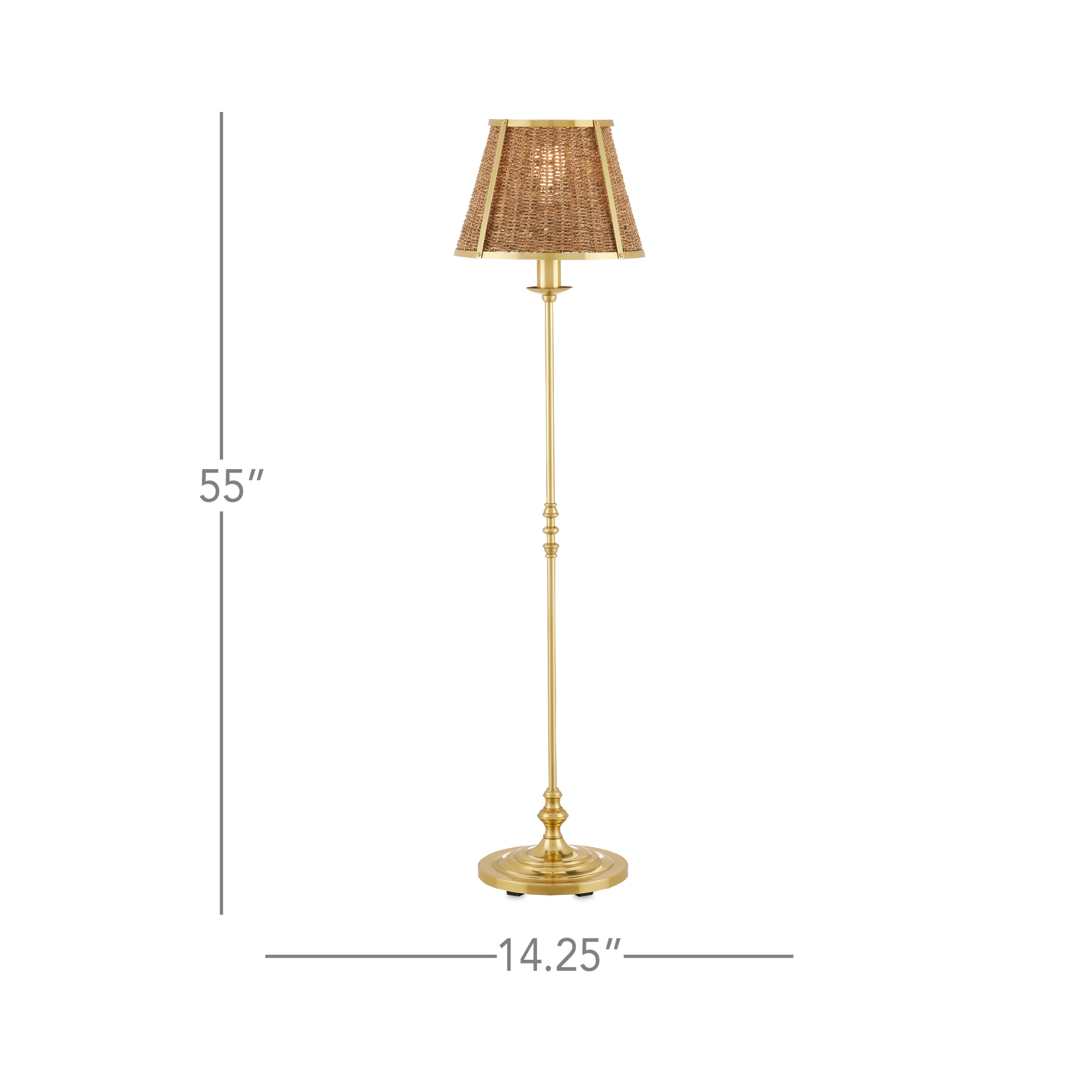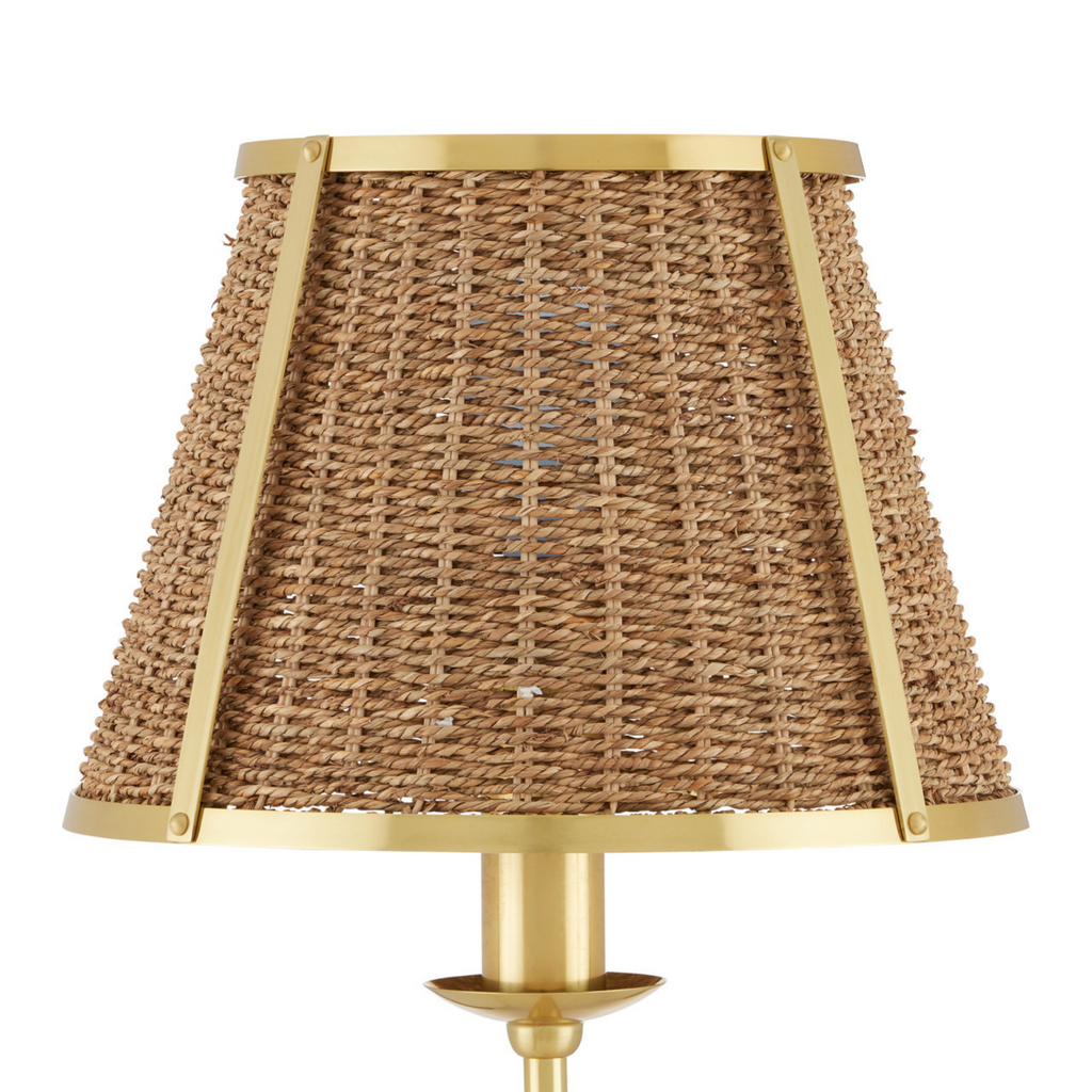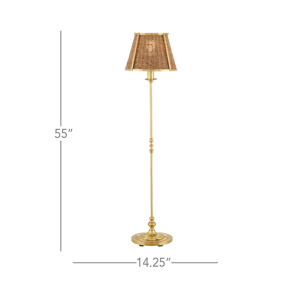 The Deauville Floor Lamp was created by Suzanne Duin, who founded the Houston shop and design studio Maison Maison, and is known for a keen eye in sourcing authentic French antiques and home accessories from around the globe. The Deauville an example in natural seagrass and steel in a polished brass finish. This tailored floor lamp trimmed in gold brings both texture and French flair.