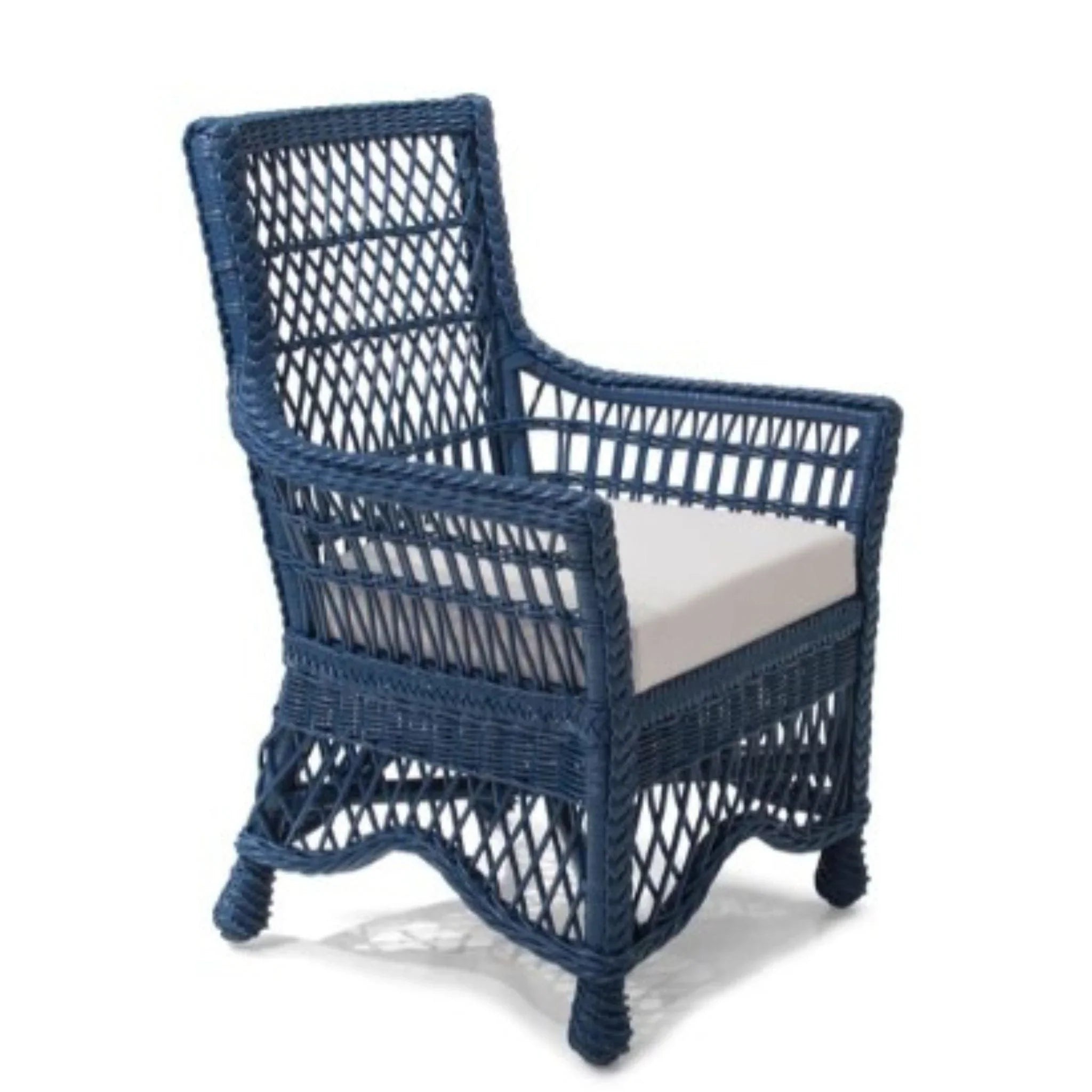 Perfect on your covered porch or in the dining room, this diamond weave wicker armchair is exquisite. With signature pineapple-style feet this chair's New England styling will have you dreaming of summer year-round. Thanks to an ultra-versatile design, it is a chic addition to every setting.