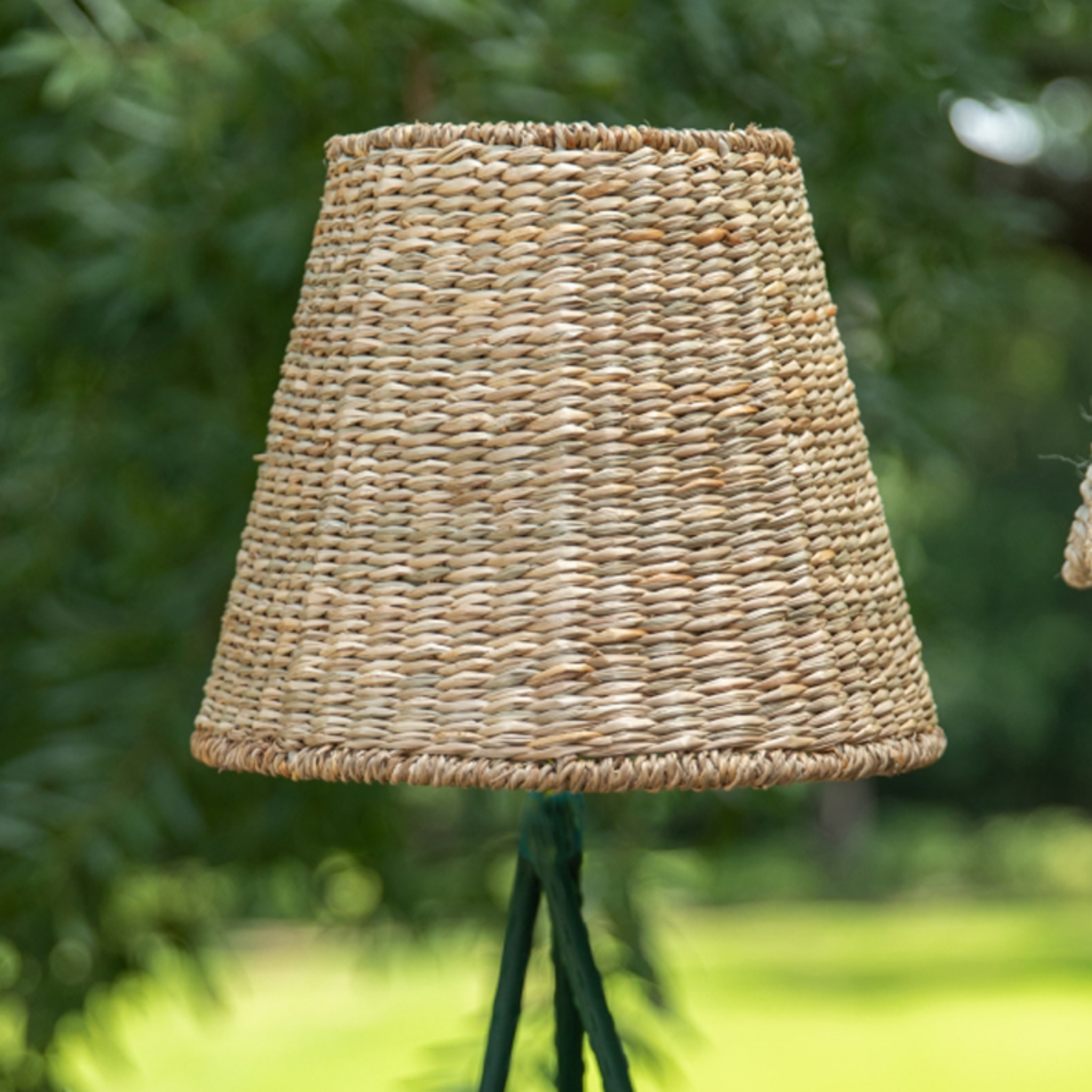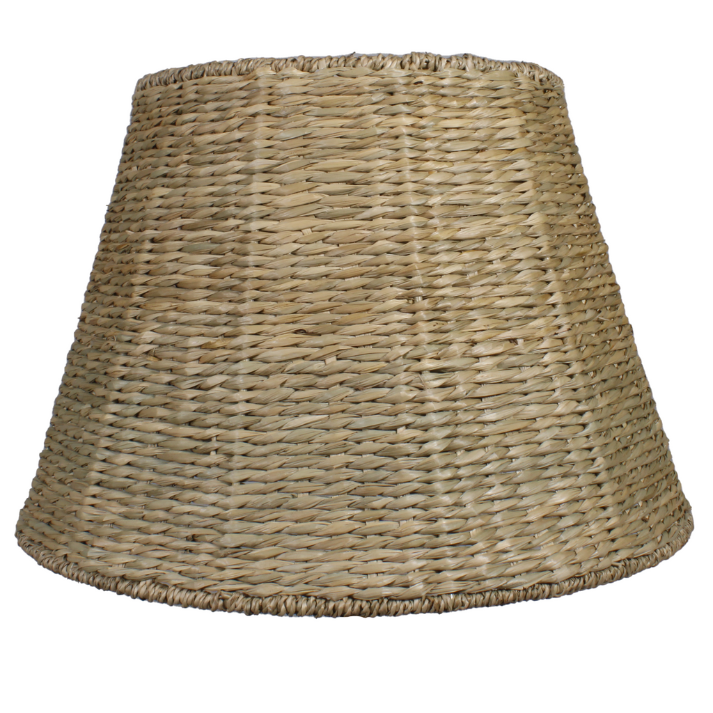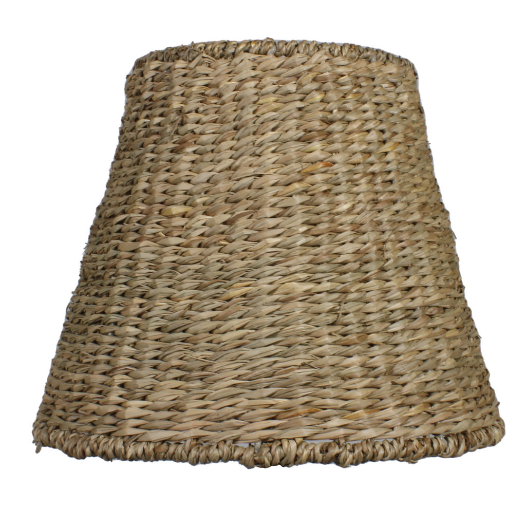 Handwoven seagrass lampshade. There is a slight variation in colors due to the nature of seagrass. Seagrass will also change in color in time, but will always be a beautiful warm color that fits any room.