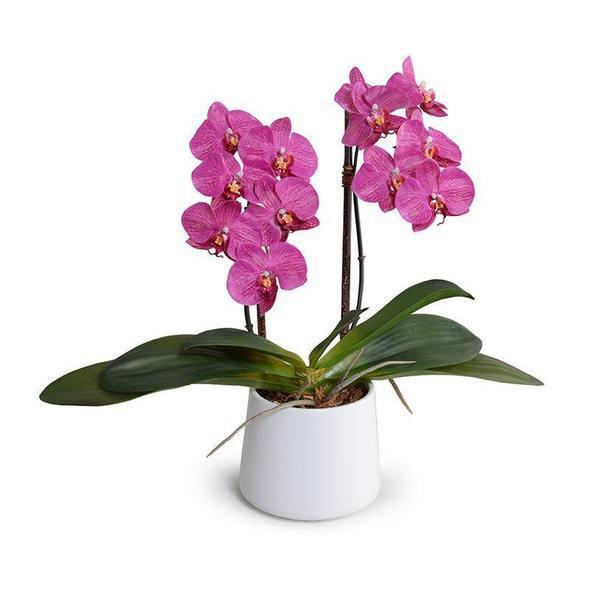 Faux 18" Fuchsia Phalaenopsis Orchid in White Ceramic Bowl