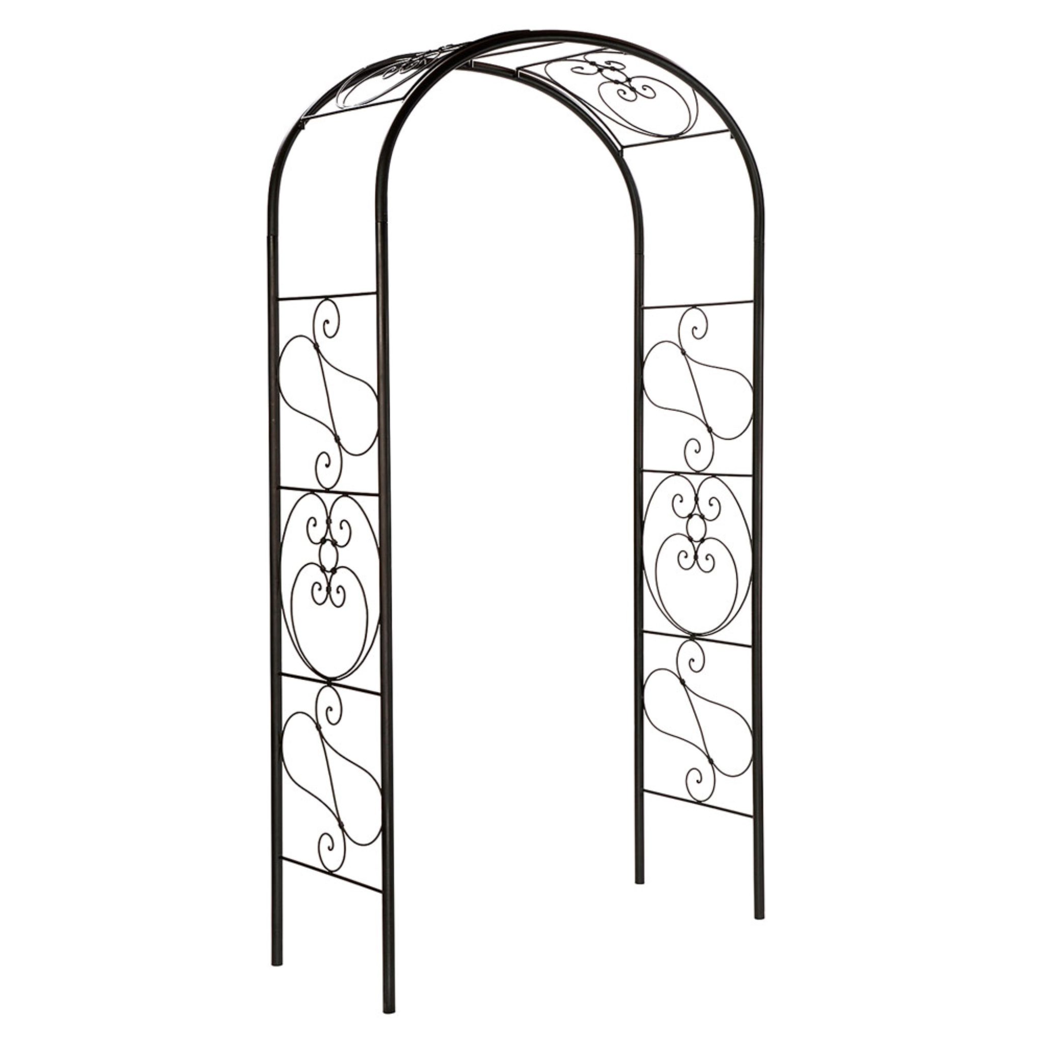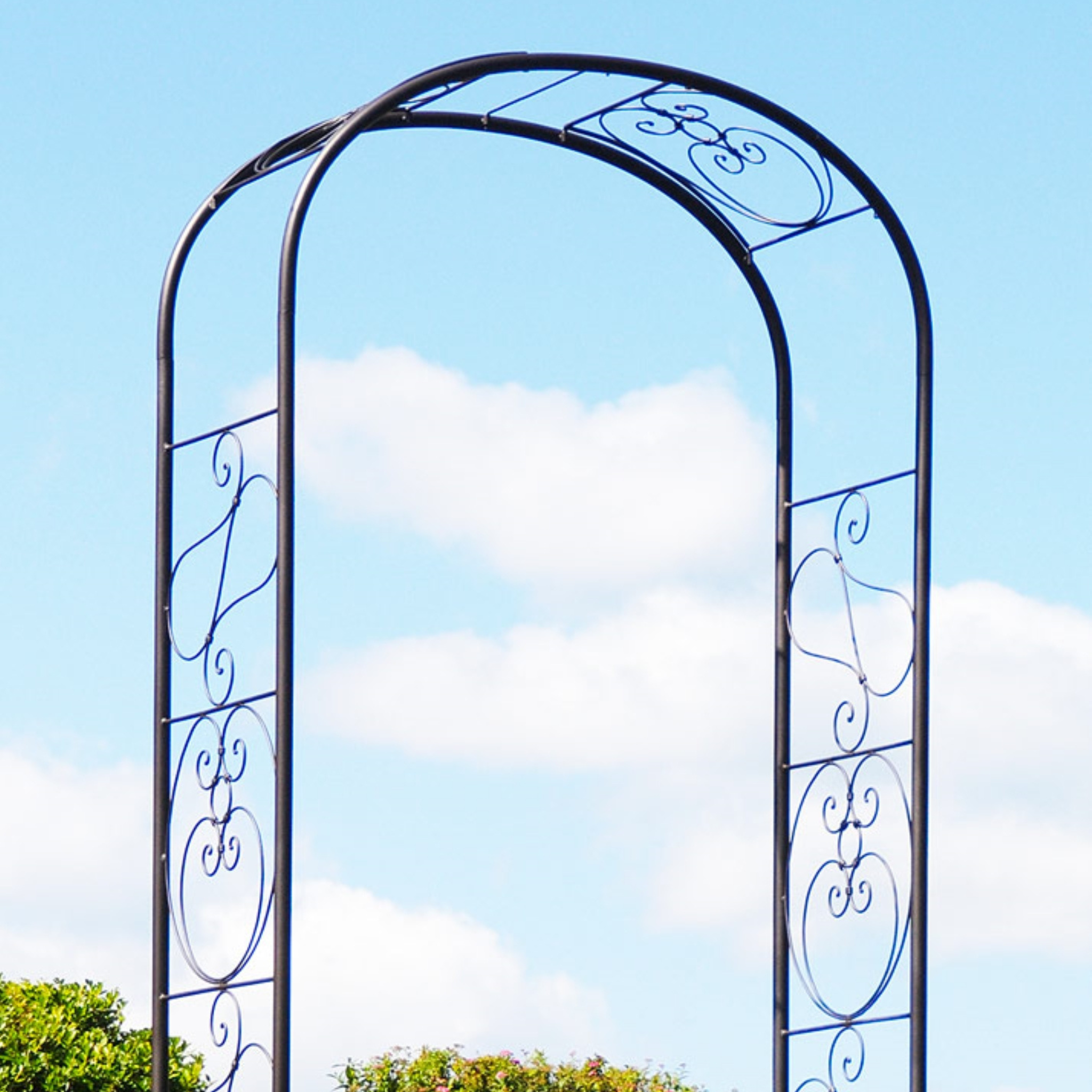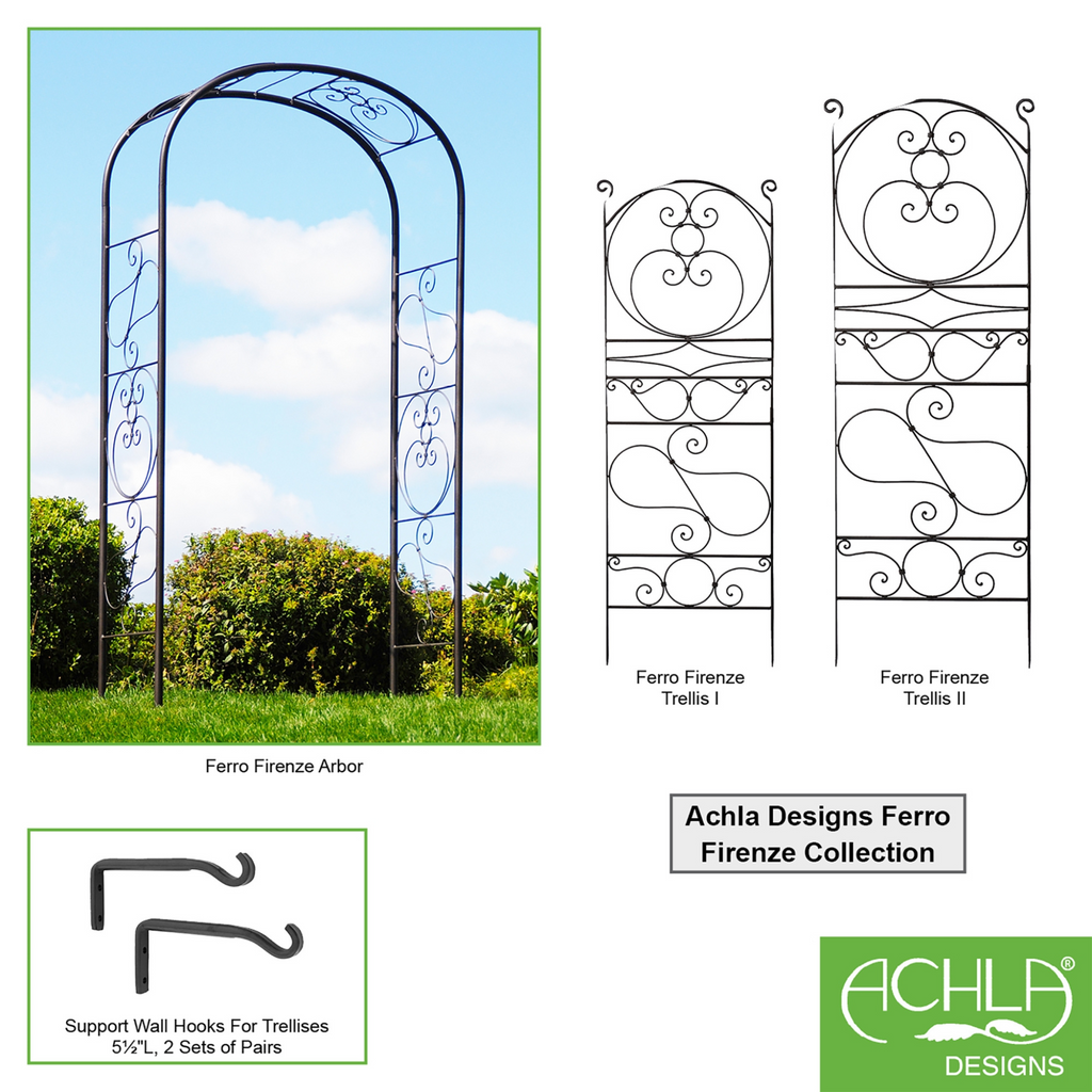This Italianate arbor uses the delicate tracery of traditional ironwork to create an elegant support for climbers. A matching trellis is available to give your garden a beautiful old-world feeling. Tall enough to support climbing vines with ample room for passage beneath.