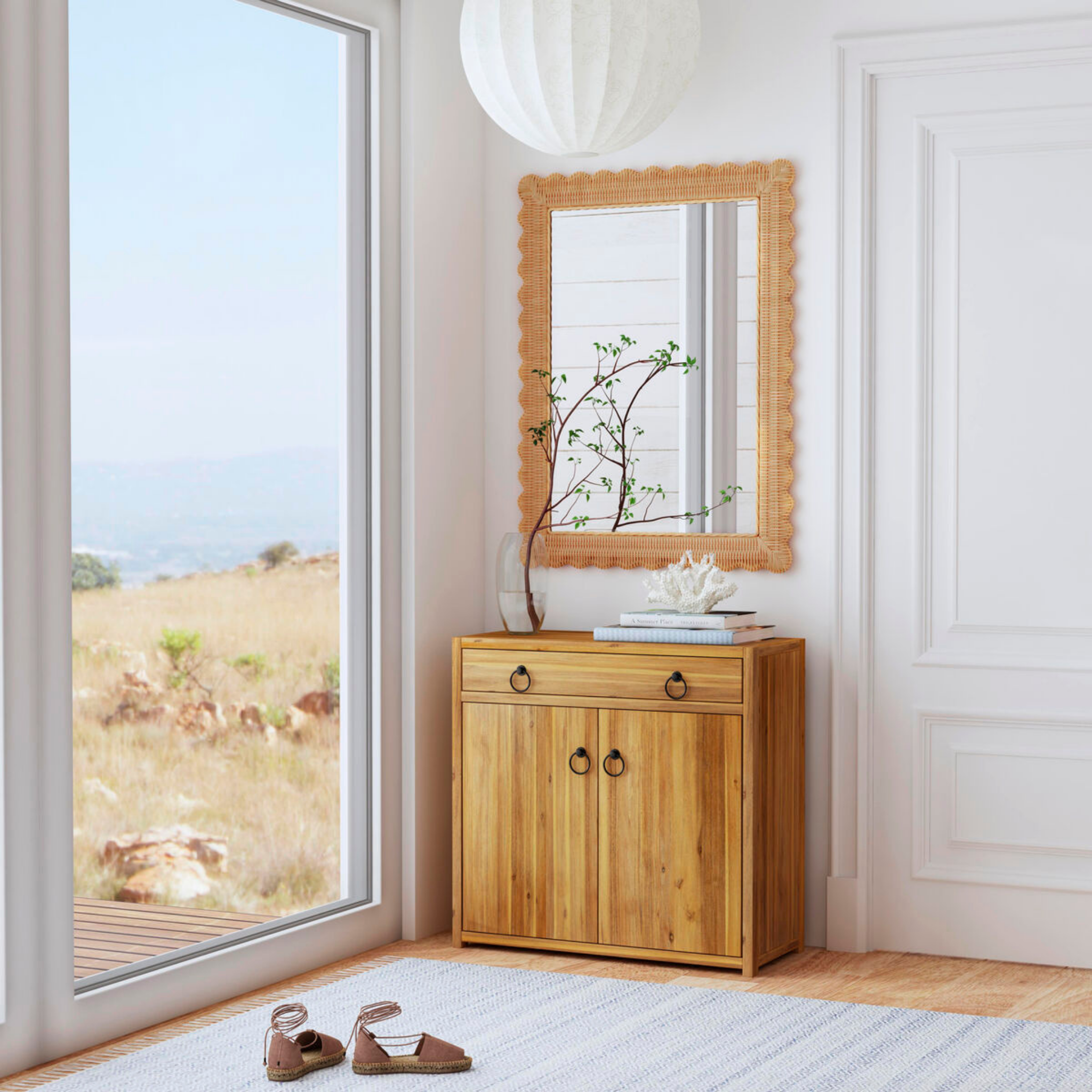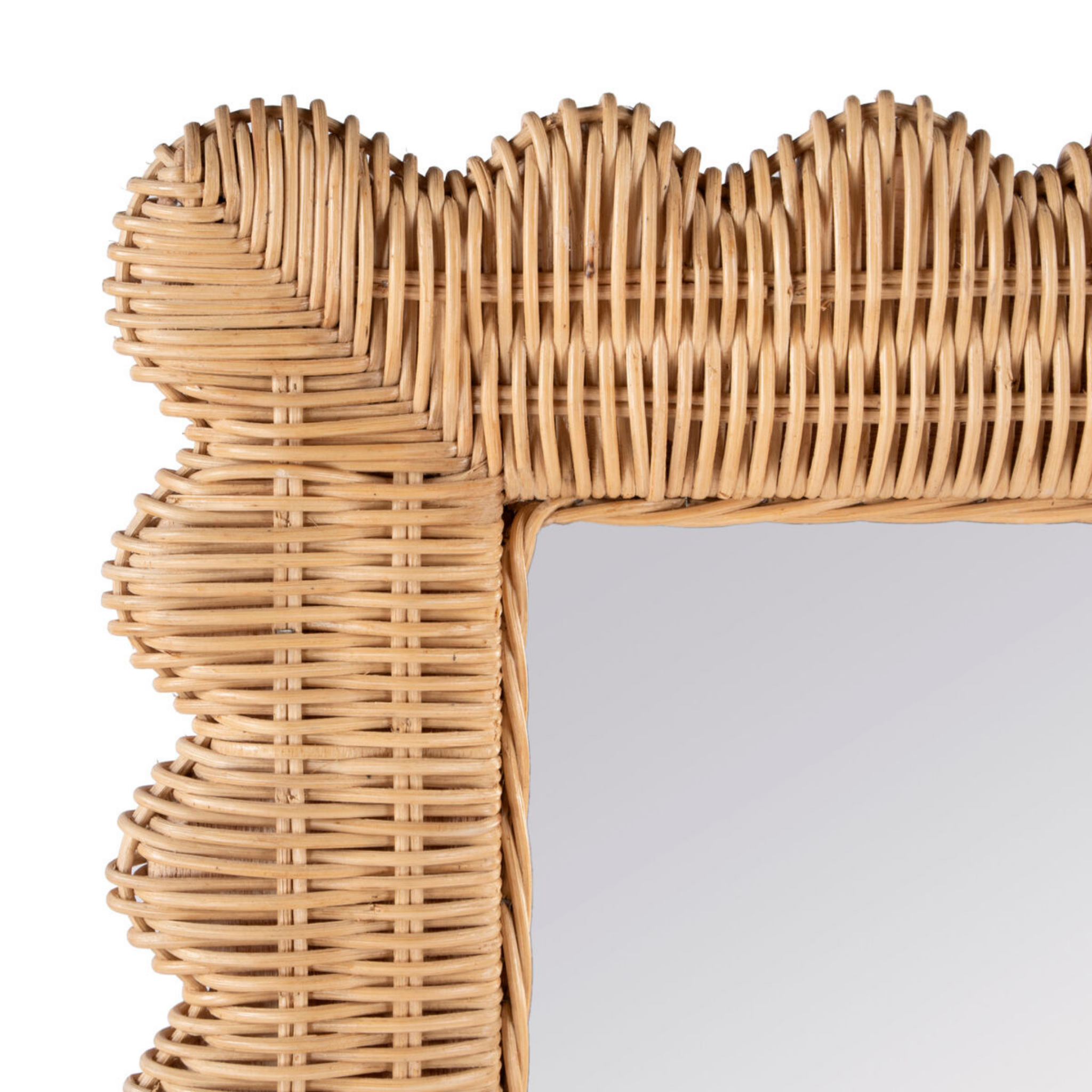 Elevate your space with our natural rattan wall mirror. Crafted with love, this accent mirror adds elegance, and the hand-woven rattan with scalloped edges embodies timeless romance. Bring warmth and charm to your home.