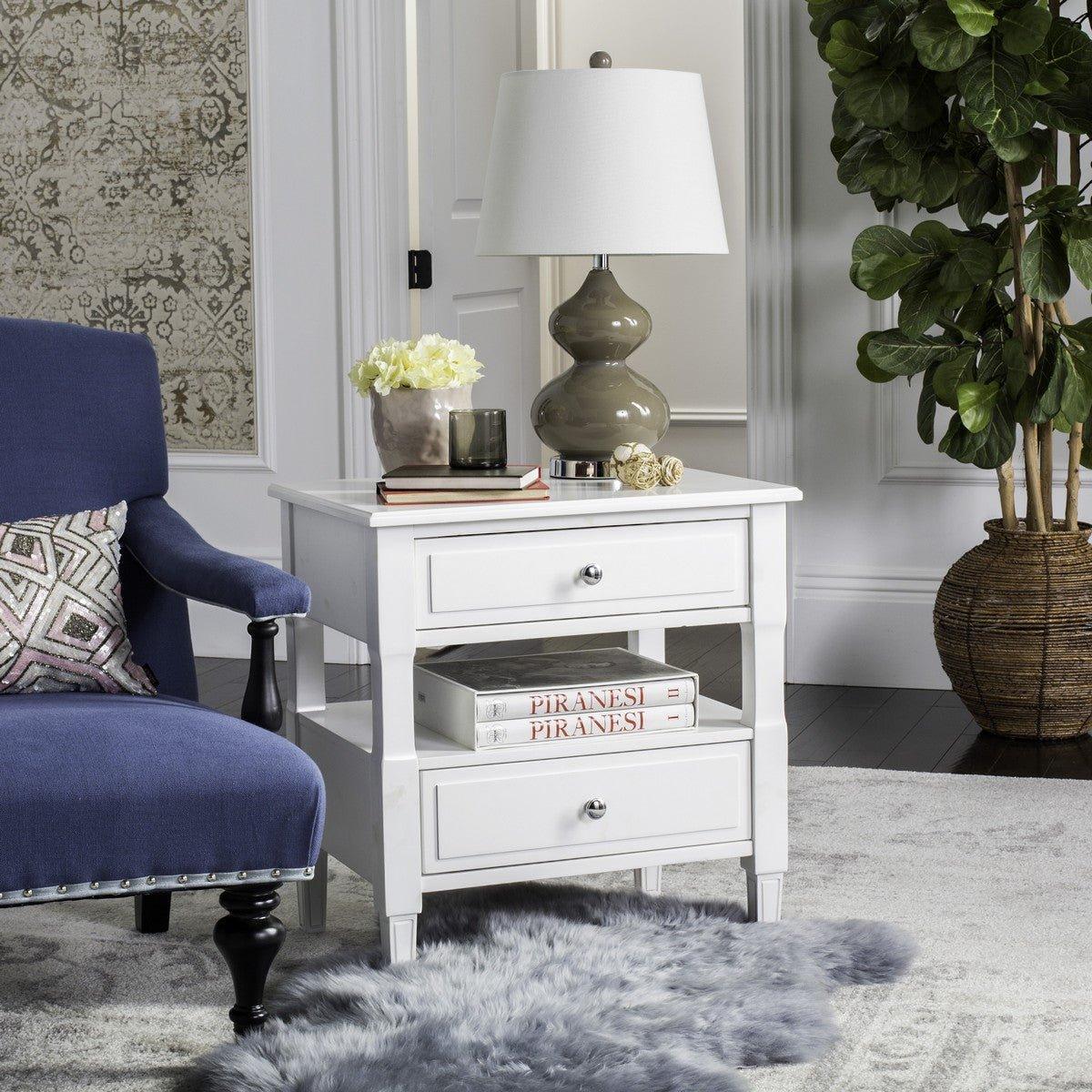 French Country White Two Drawer Night Stand