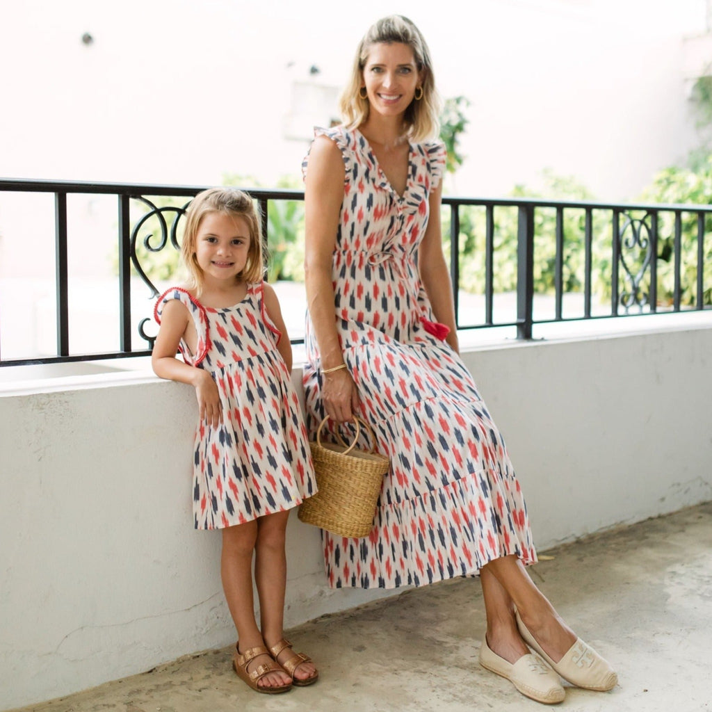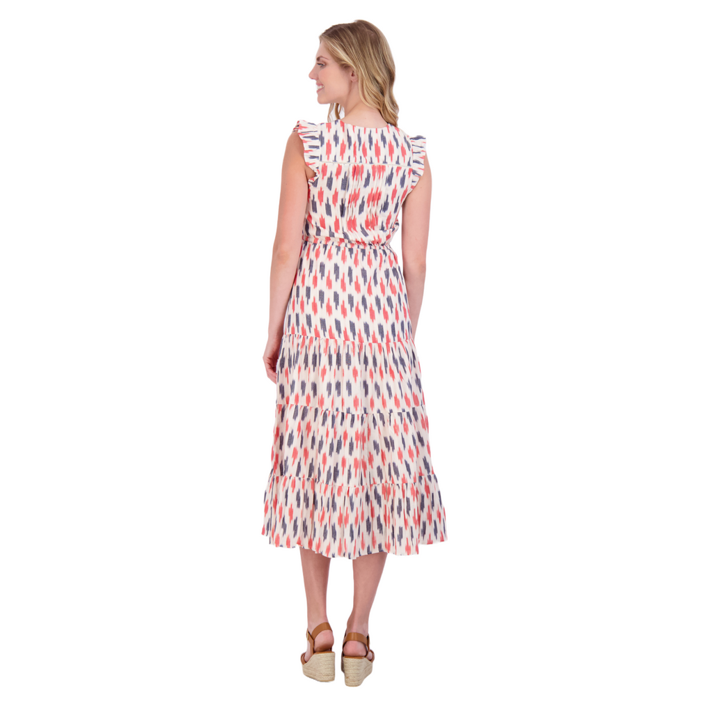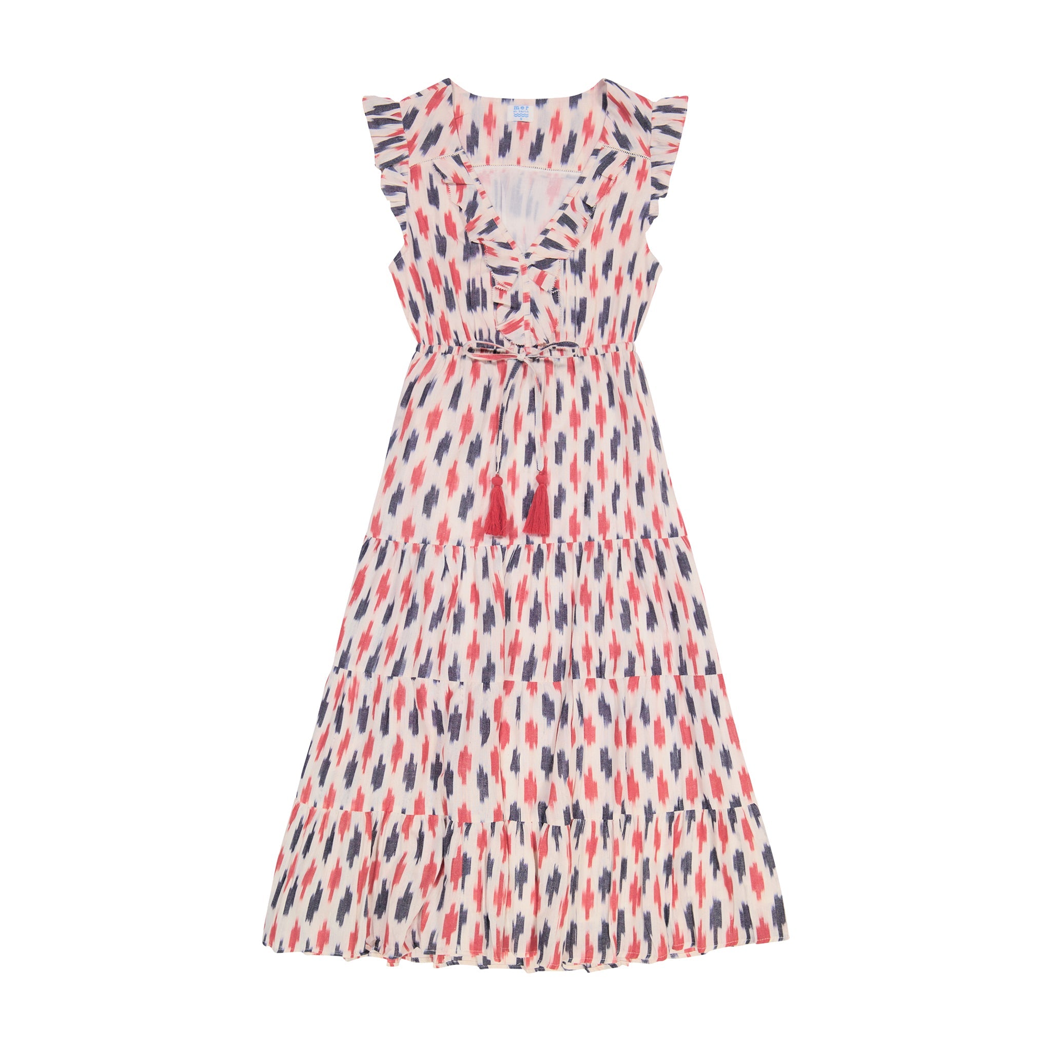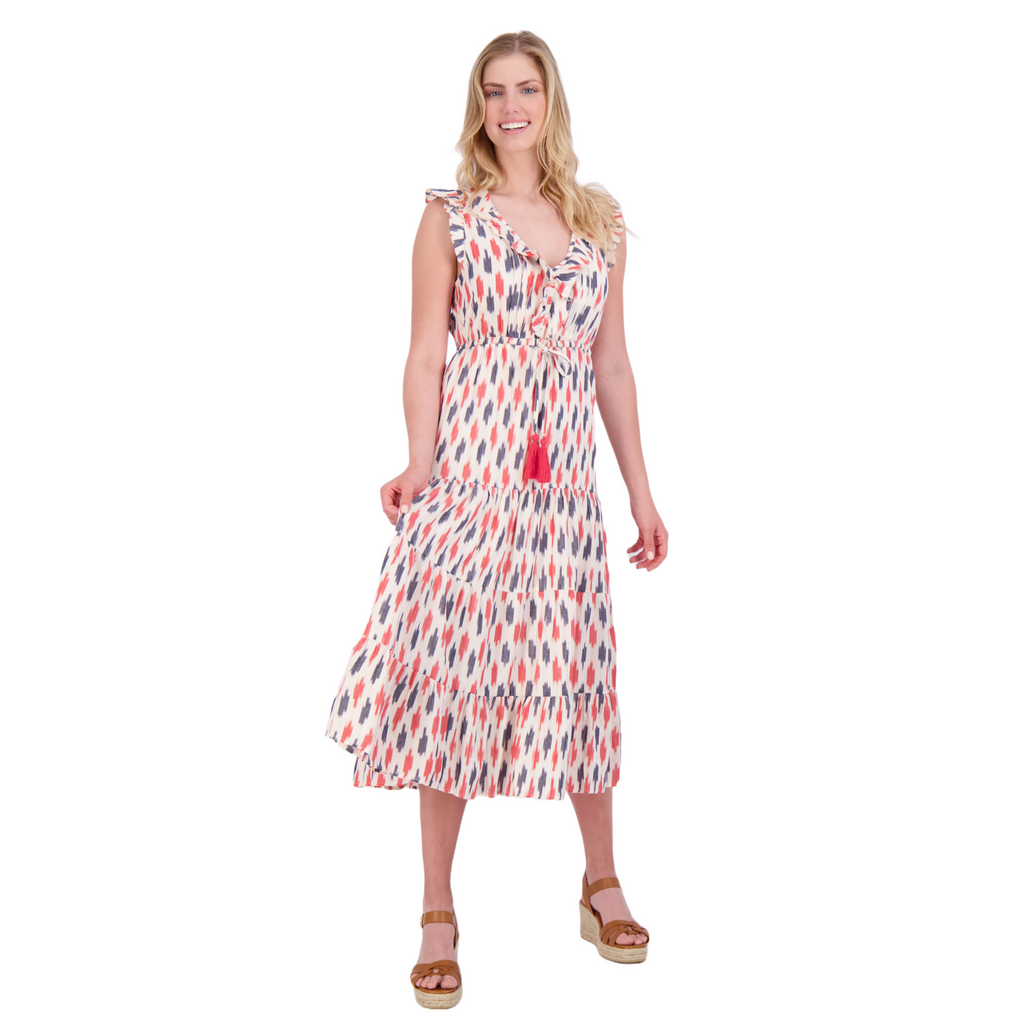 Giselle Women's Maxi Dress in Cream, Red and Navy Ikat