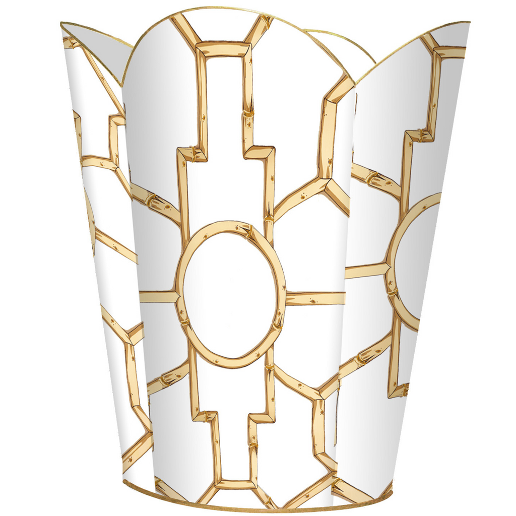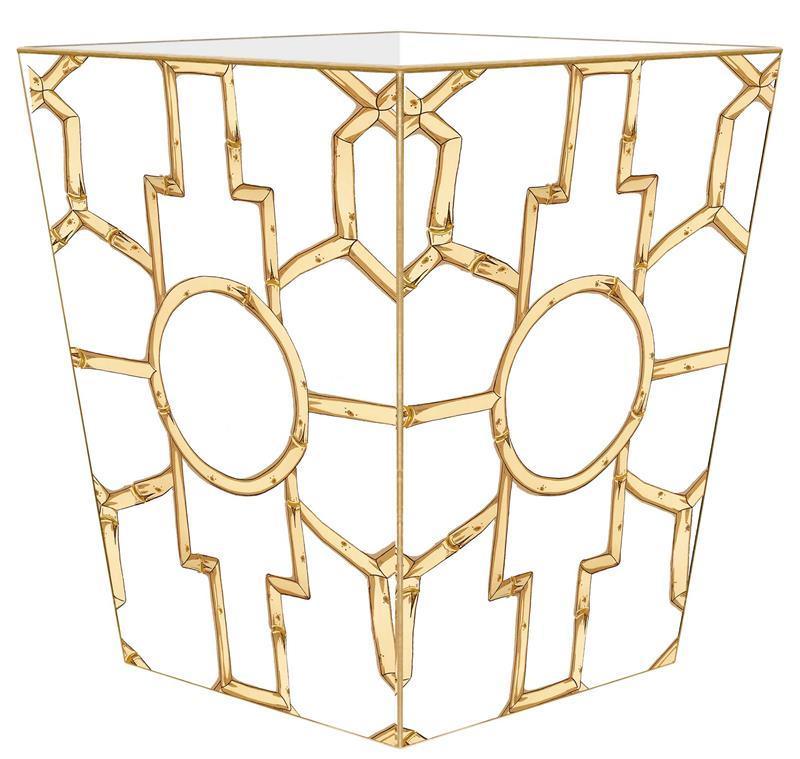 Gold Bamboo on White Decoupage Wastebasket and Optional Tissue Box Cover
