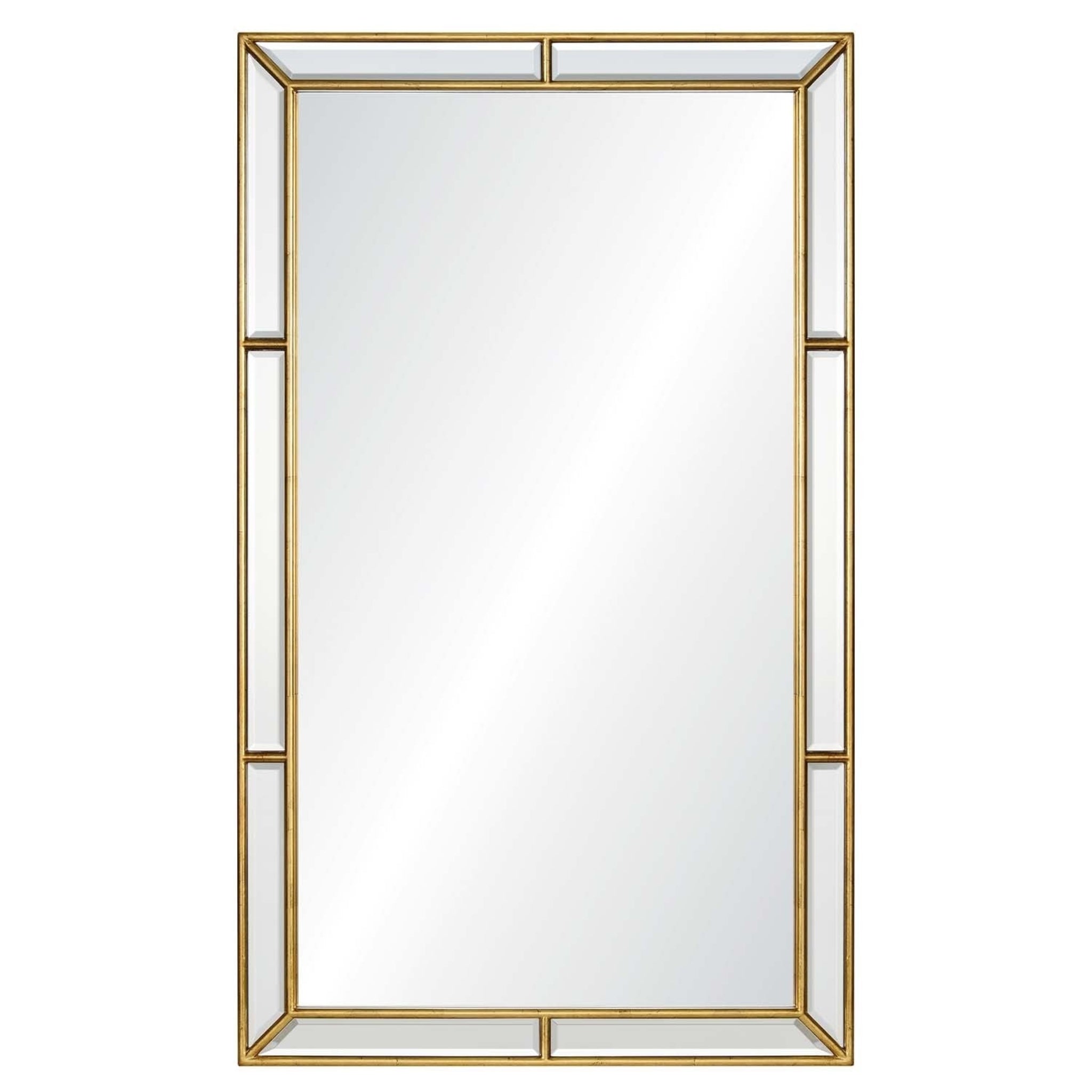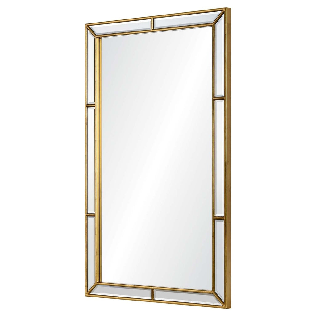 Elevate your space with our Hand Carved Burnished Gold Leaf Finish Framed Wall Mirror. Its hand-carved design and burnished gold leaf finish exude luxury and sophistication. The non-beveled center mirror is surrounded by hand-cut and beveled mirrors, adding an elegant touch. Use the provided cleat hanging hardware for easy installation.