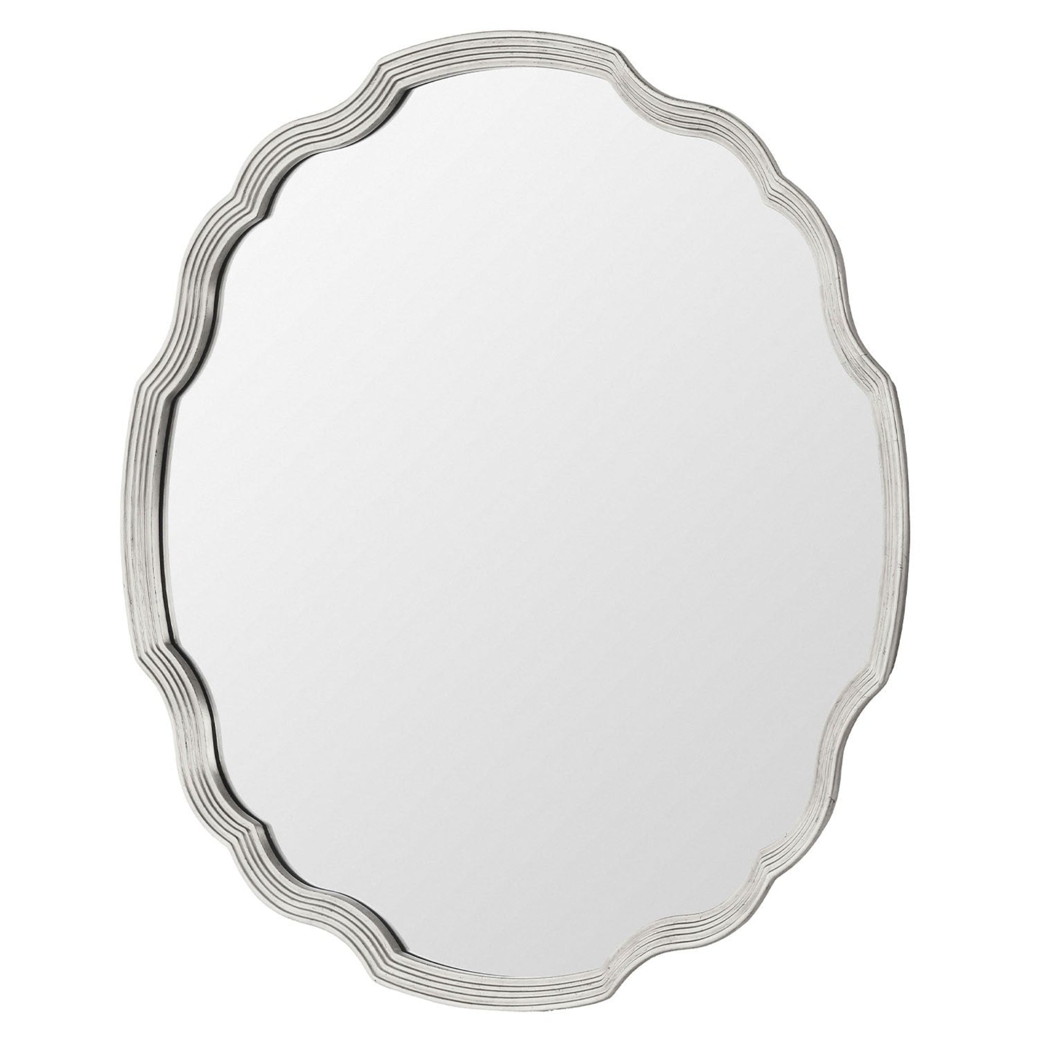 Hand Carved Rounded Chippendale Silver Leaf Framed Wall Mirror