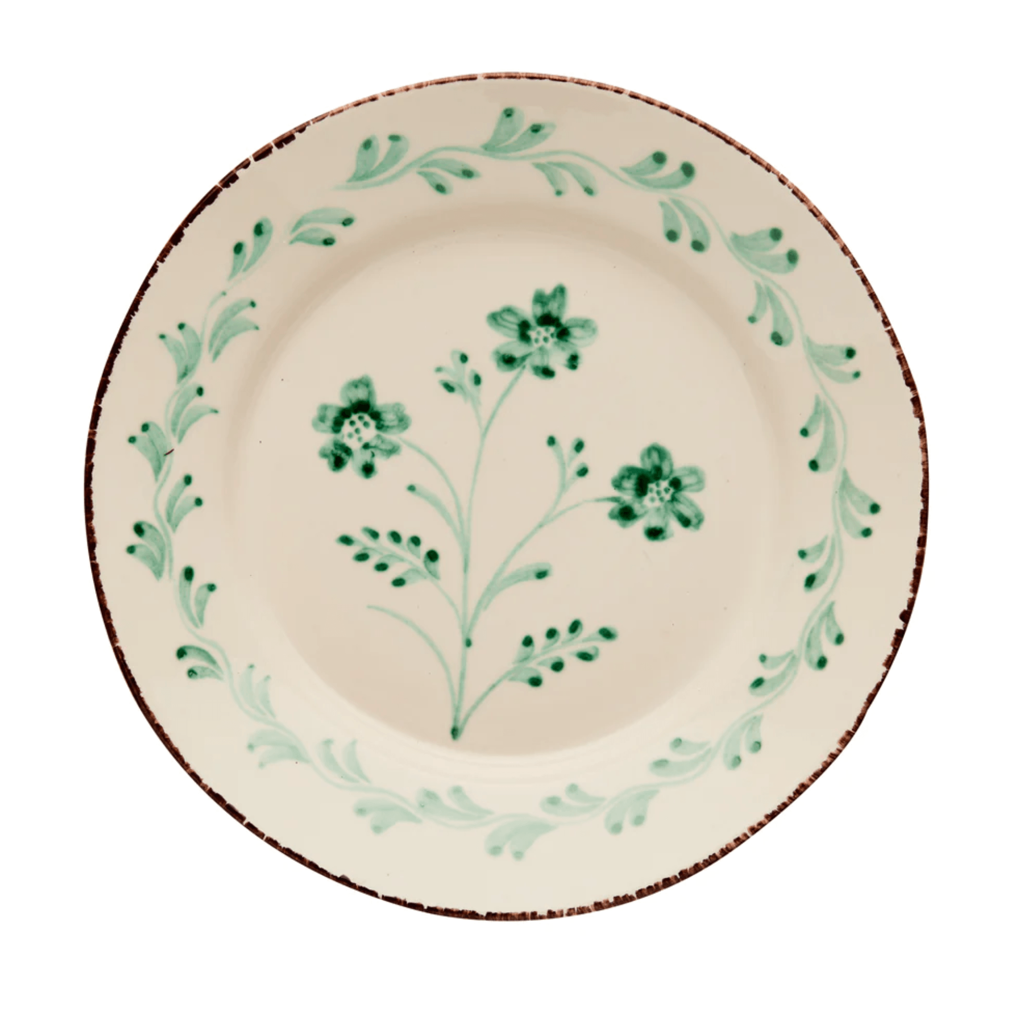 Hand Painted Green & White Flowers and Vines Dinner Plates