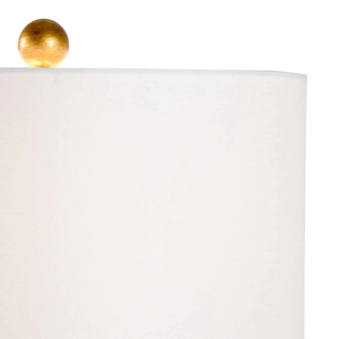Brighten up your space with this green and white hand painted ceramic lamp! This piece is colorful yet elegant with its green glaze and gold leaf accents. This lamp has a ceramic body with a green and white glaze finish. This lamp measures 30h x 8.5w x 8.5d and is paired with a gorgeous off-white linen shade. It has a 3-Way switch and max wattage of 100. Click on images for greater detail.