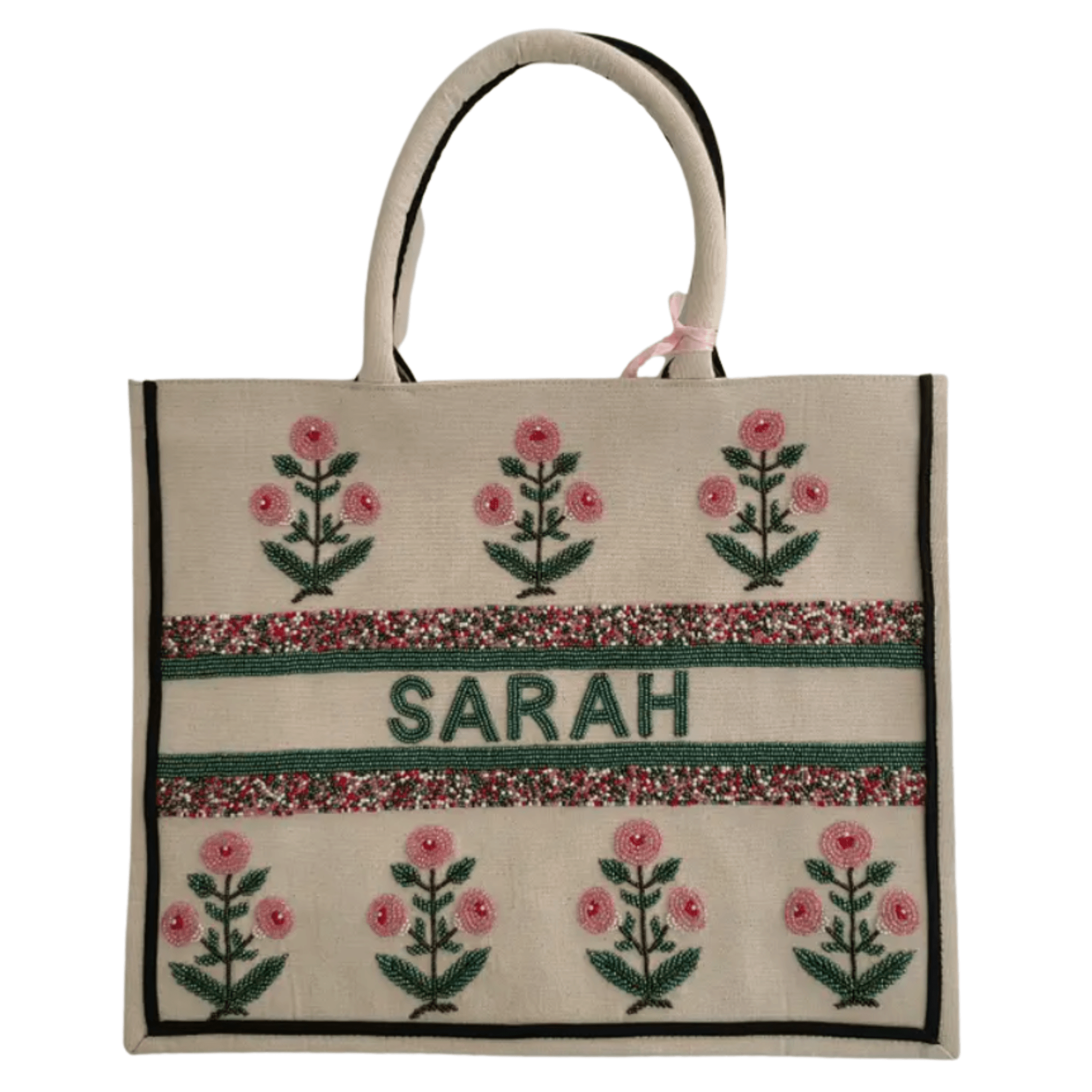 This customizable beaded bag fits smartphone, keys, card case, lip gloss, pocket mirror, and phone charger and lots more. This item is not stocked and is custom-made to order. It may not be returned. Click images for greater detail.