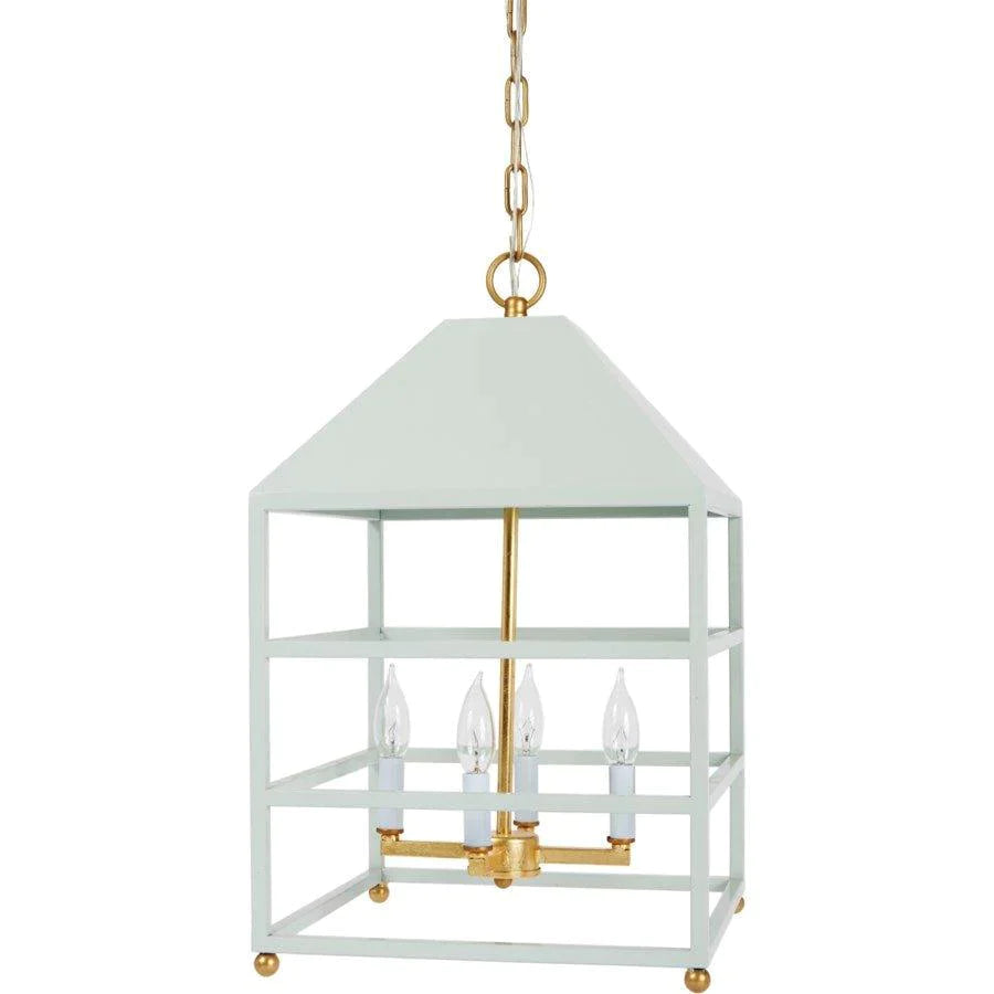Hanging Blue and Gold Square Cage 4-Light Lantern