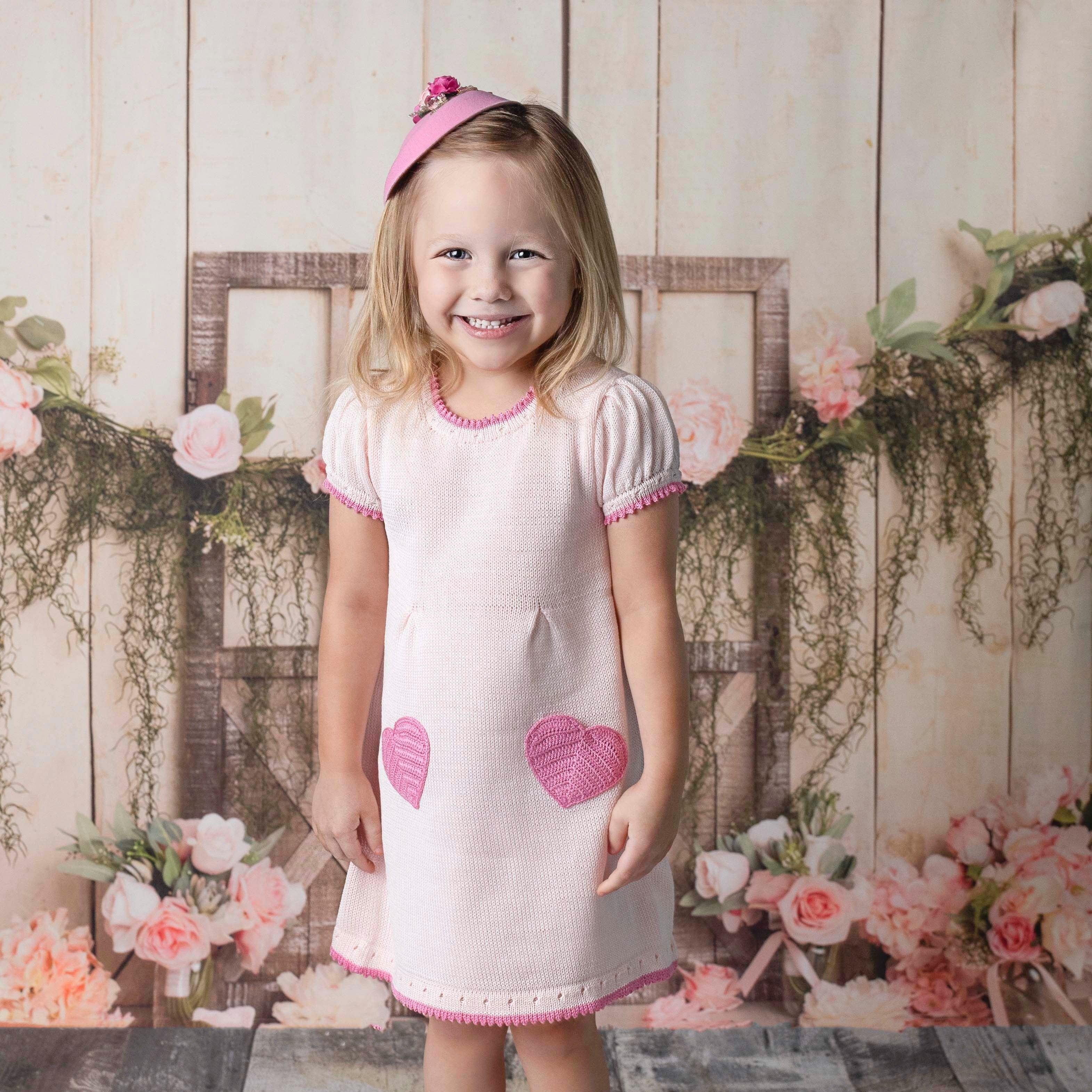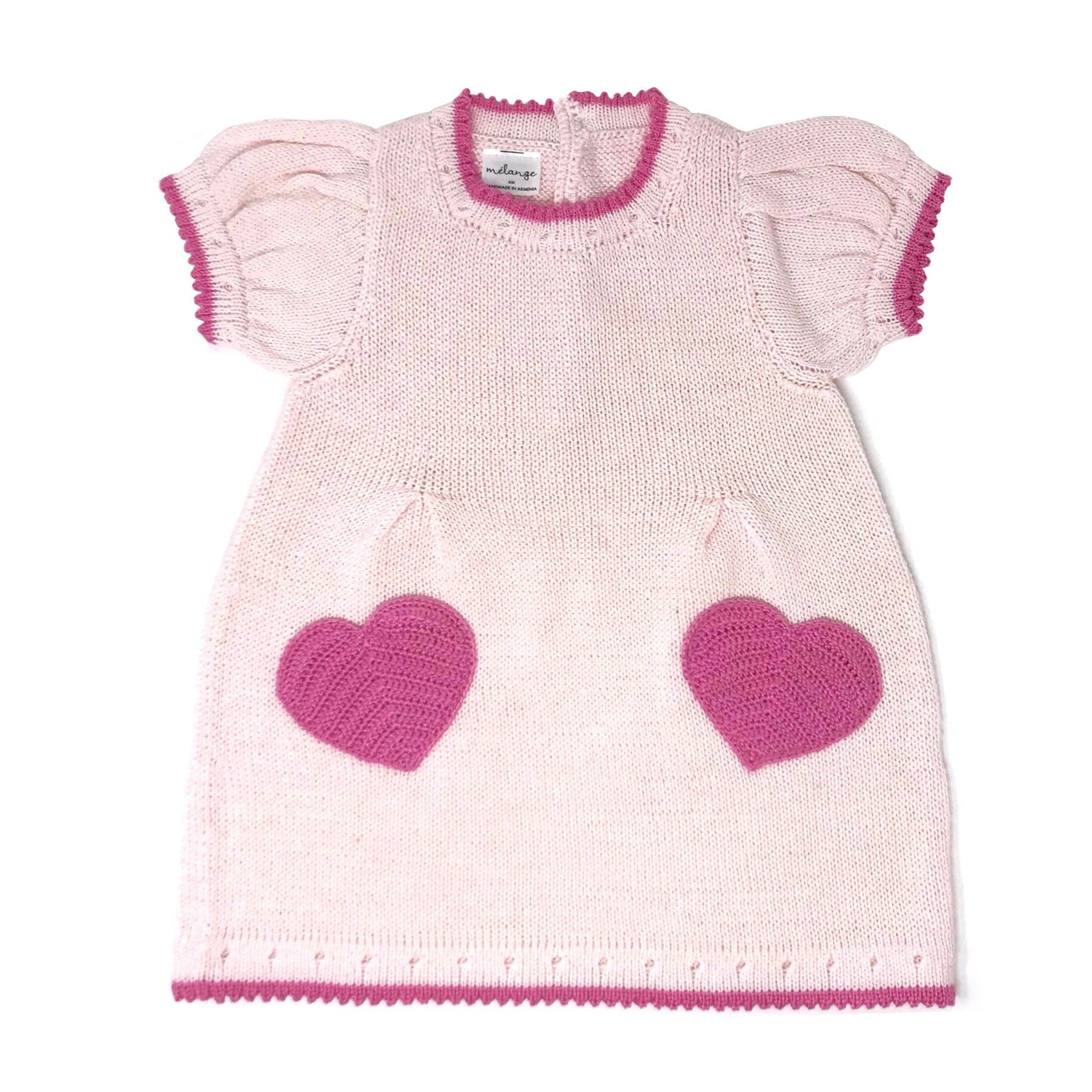 Two festive hearts make fun pockets. Perfect dress for your little Valentine!  This dress also matches the pink Valentine's baby hat.