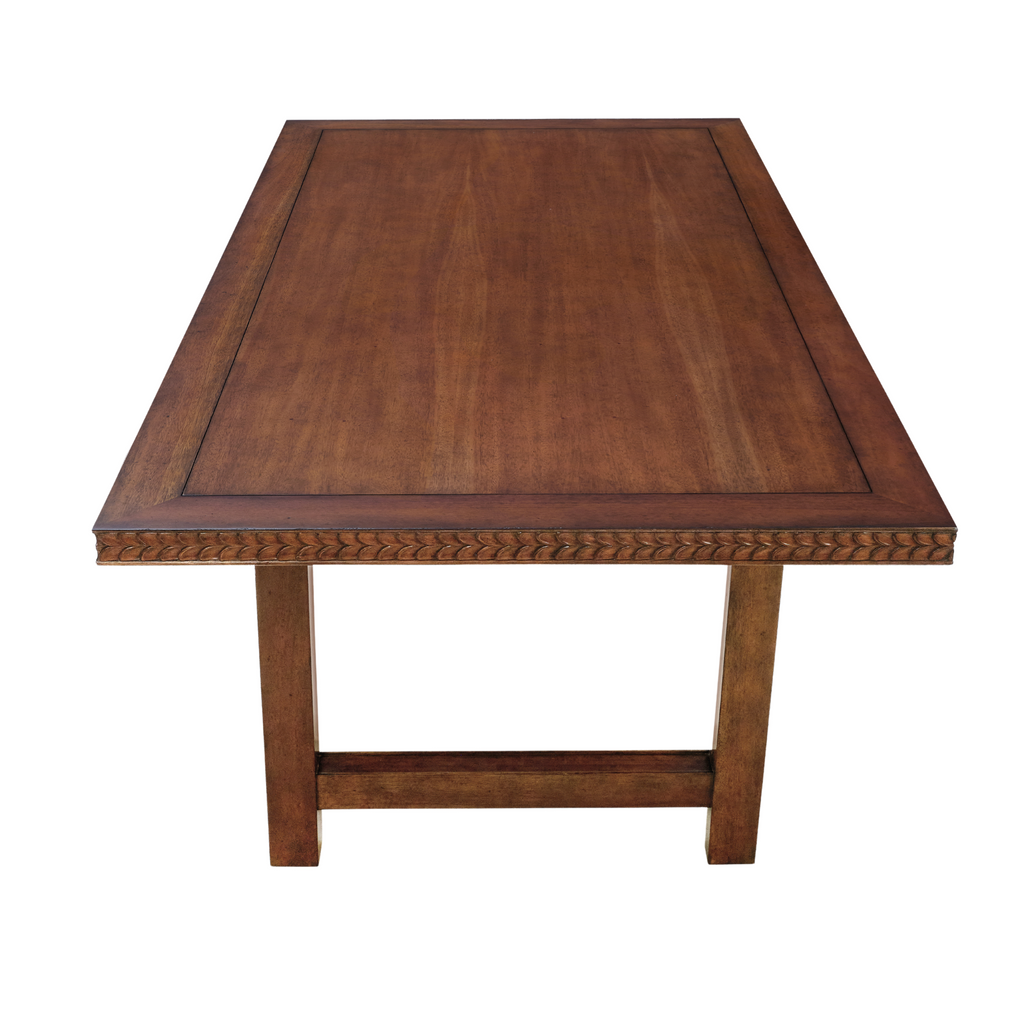 A gorgeous, early 19th century French leaf detail inspired our contemporary Holland Dining table. It’s hand-carved floral motif runs along the table top side and continues down the legs, which adds a low-key floral note to the handsome, mahogany finished whole.