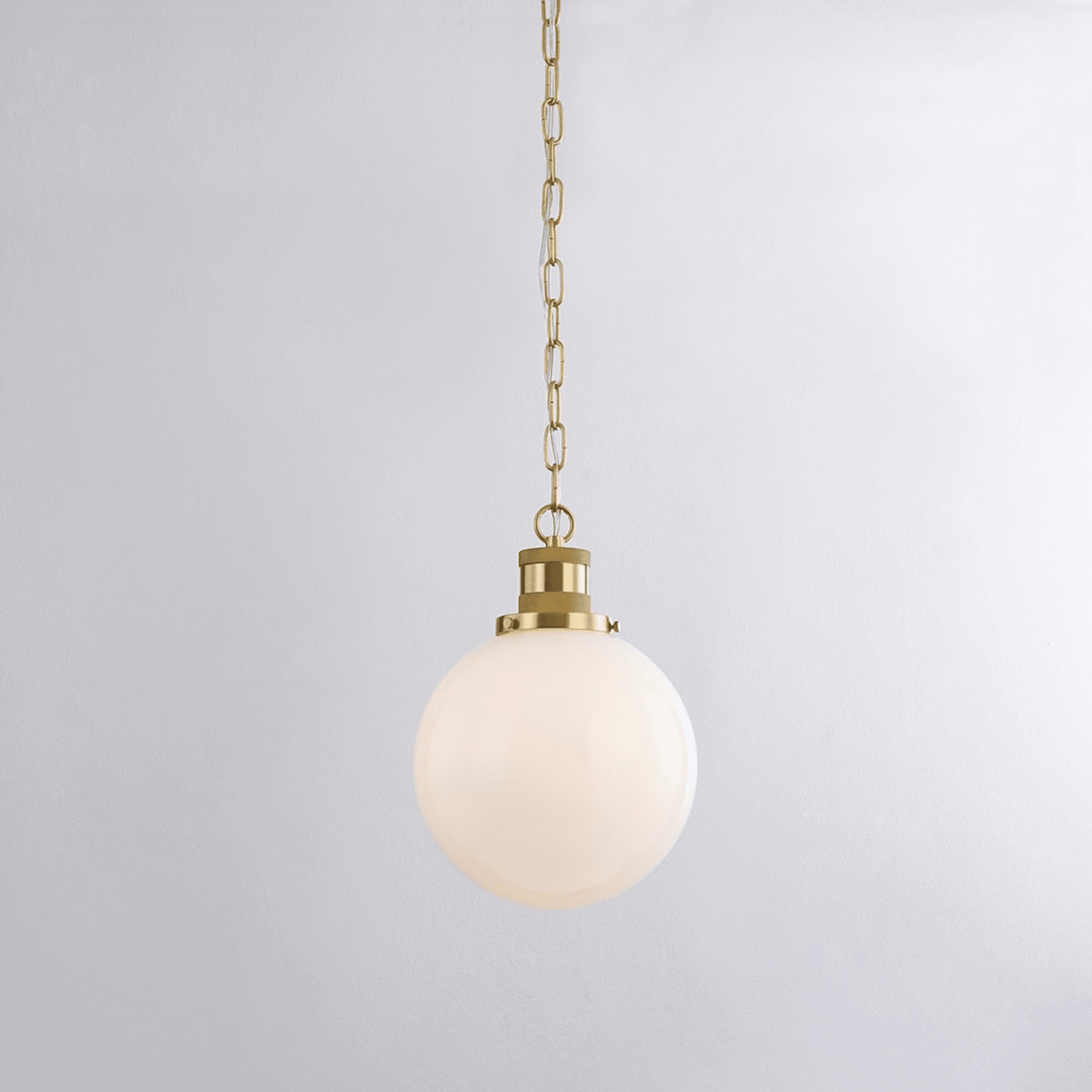 Beverly Aged Brass Glass Dome Pendant Light - Available in Two Sizes