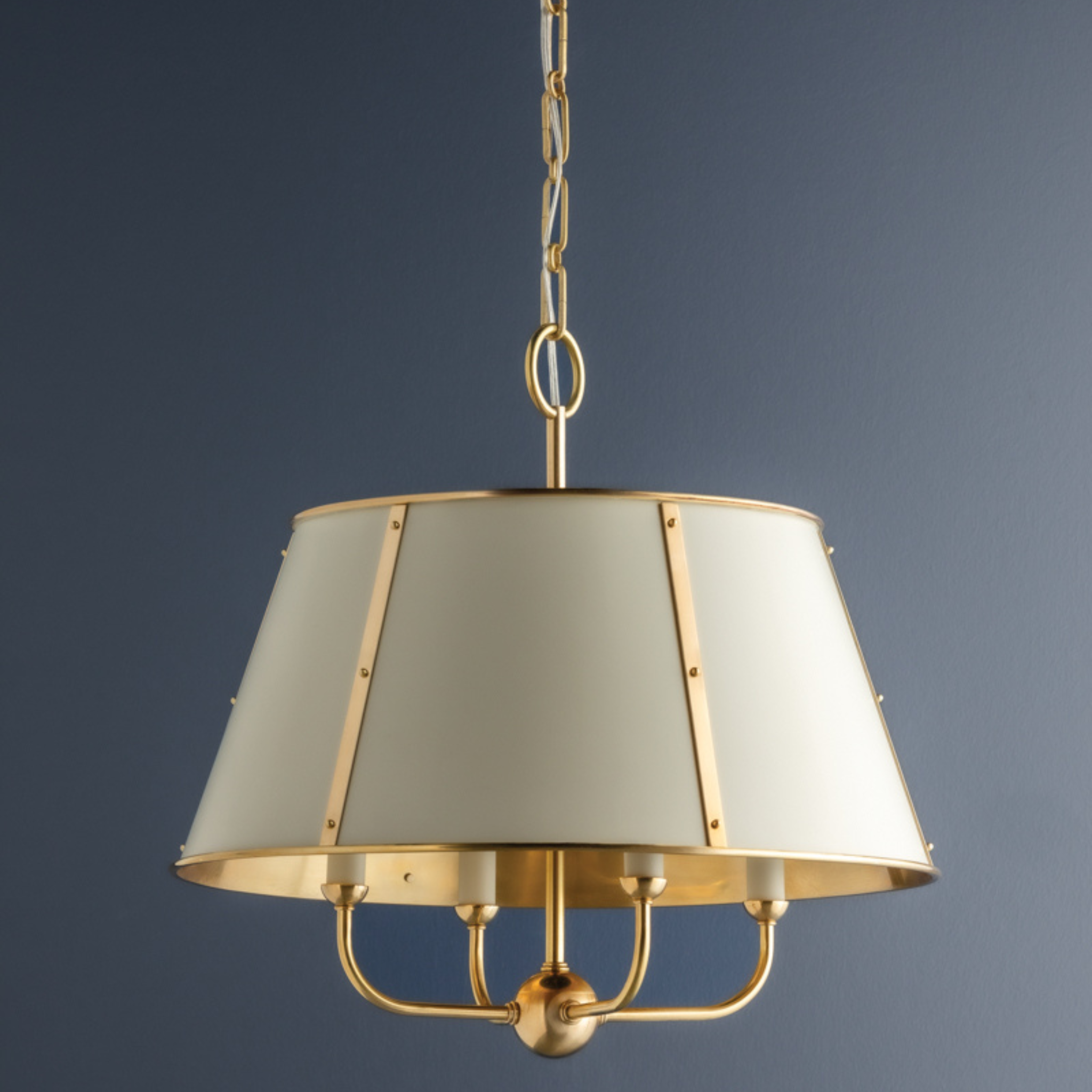Regal in nature, Cambridge delivers style and substance. The classic candelabra frame is set in a modern metal shade, featuring decorative flourishes in aged brass. Available in two sizes.