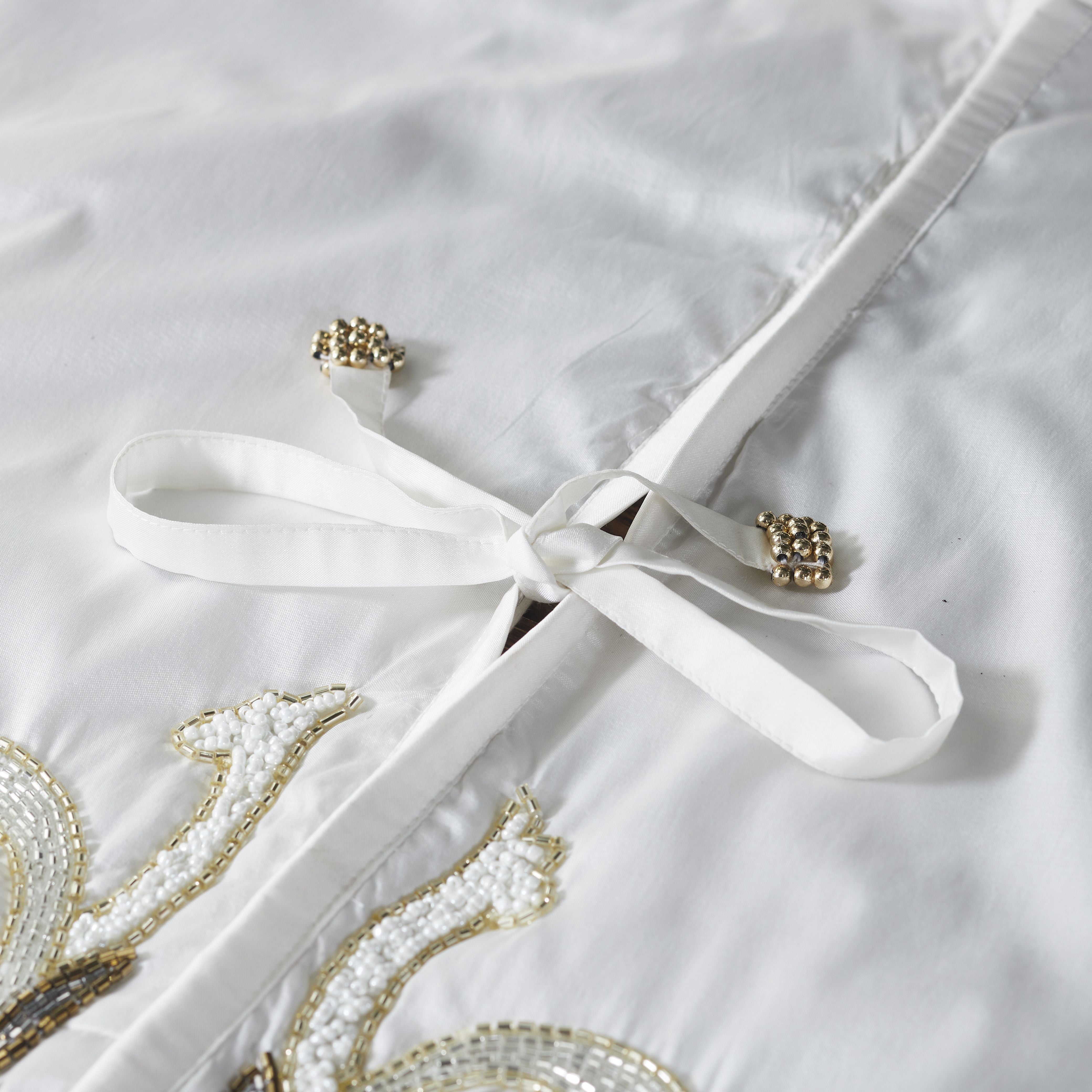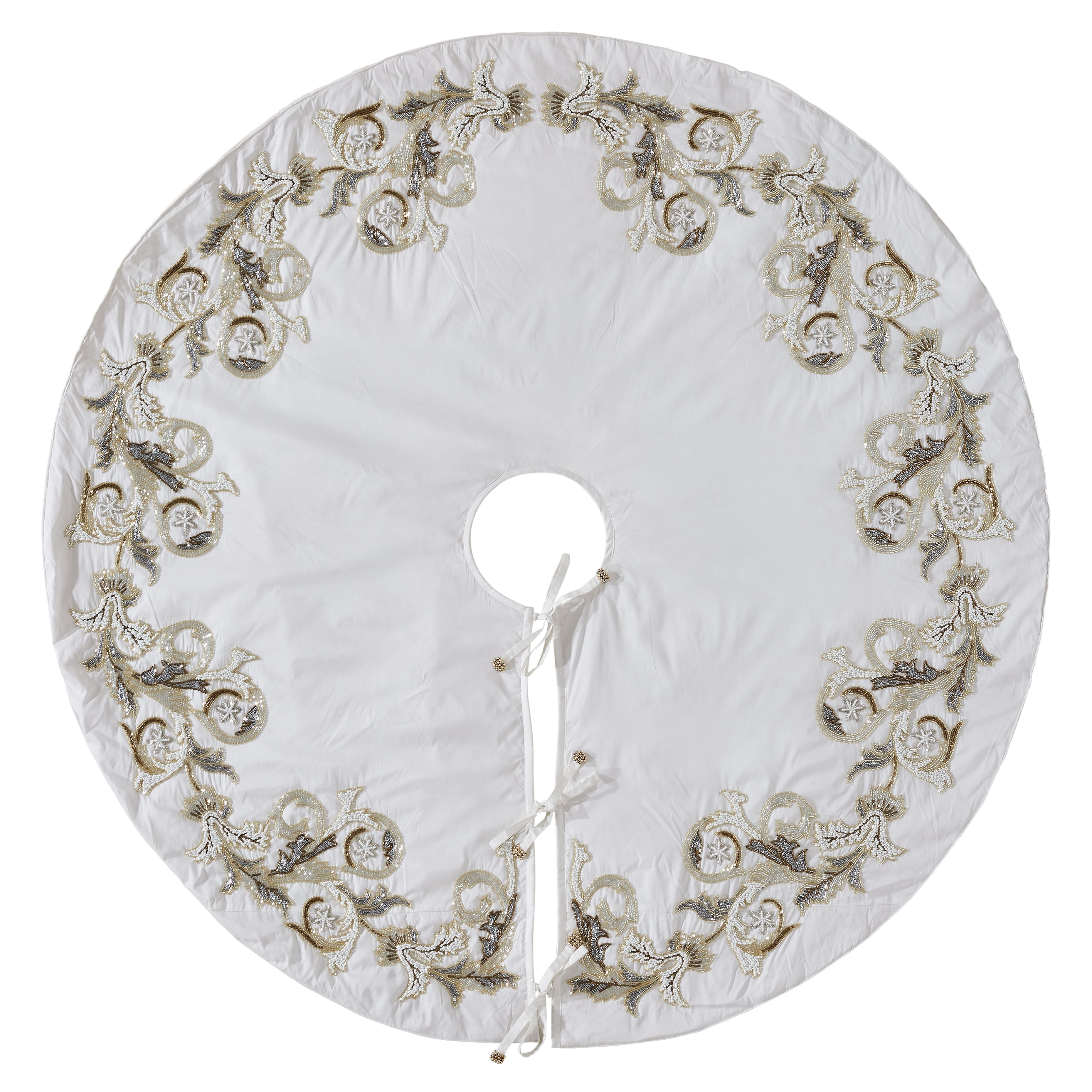 Crafted from exquisite creamy polysilk and adorned with a gorgeous hand-beaded design of florets and flourishes, this Christmas tree skirt is a showstopper. An instant family heirloom.