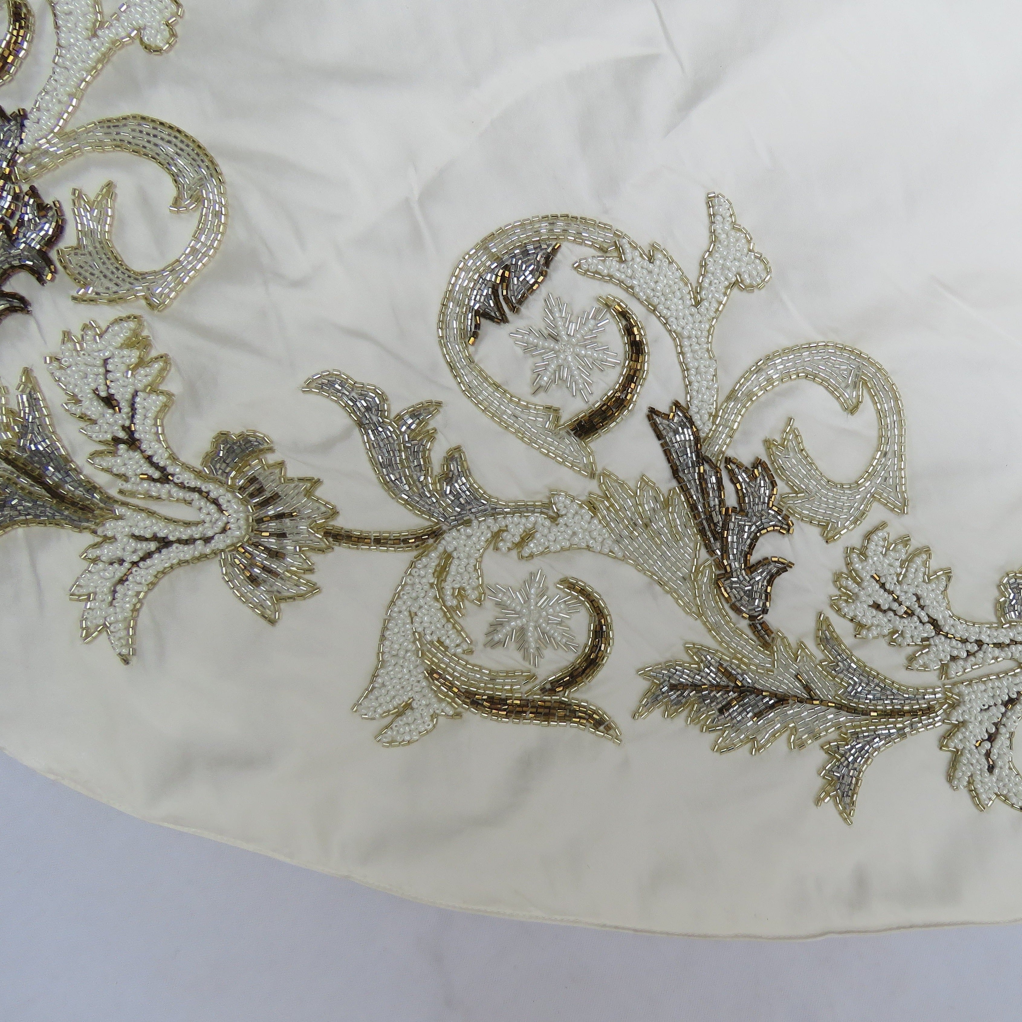 Imperial Design Hand Beaded Christmas Tree Skirt on Cream Silk- Large - 60"
