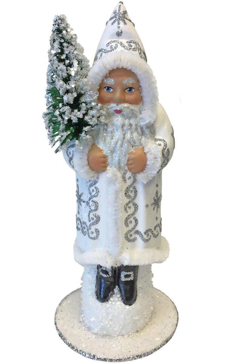 Ino Schaller Paper Mache Santa In White & Silver Coat Candy Container Christmas Decoration