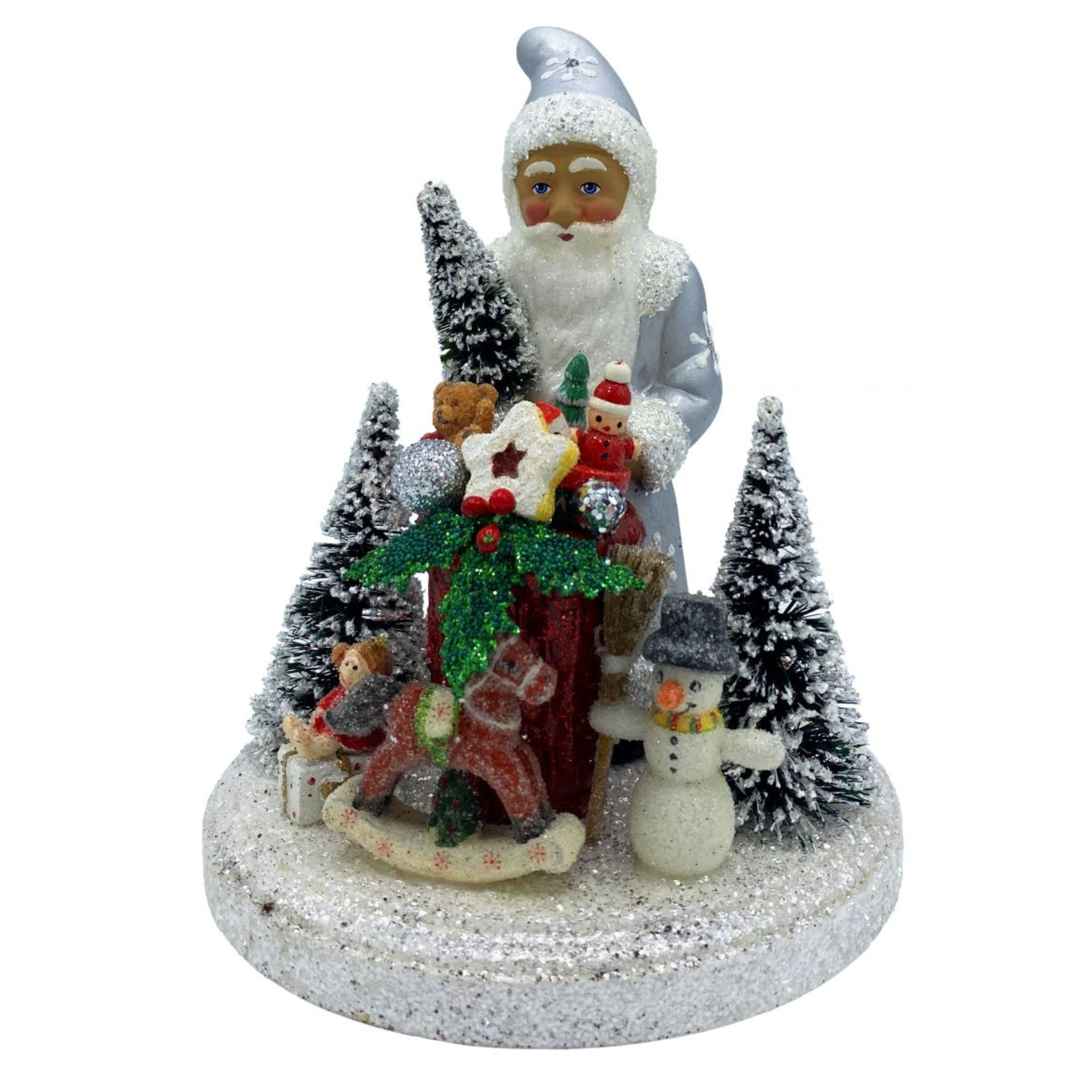 Ino Schaller Paper Mache Silver Coat Santa With Gifts Candy Container Christmas Decoration