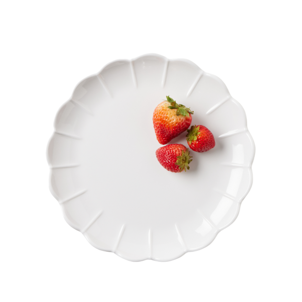 Made from durable melamine with scalloped detailing, our Iris collection showcases classic beauty and versatility.