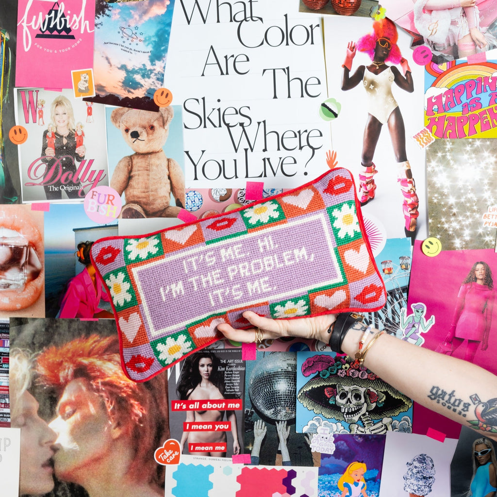 Make a statement with this charming-meets-chic needlepoint pillow.