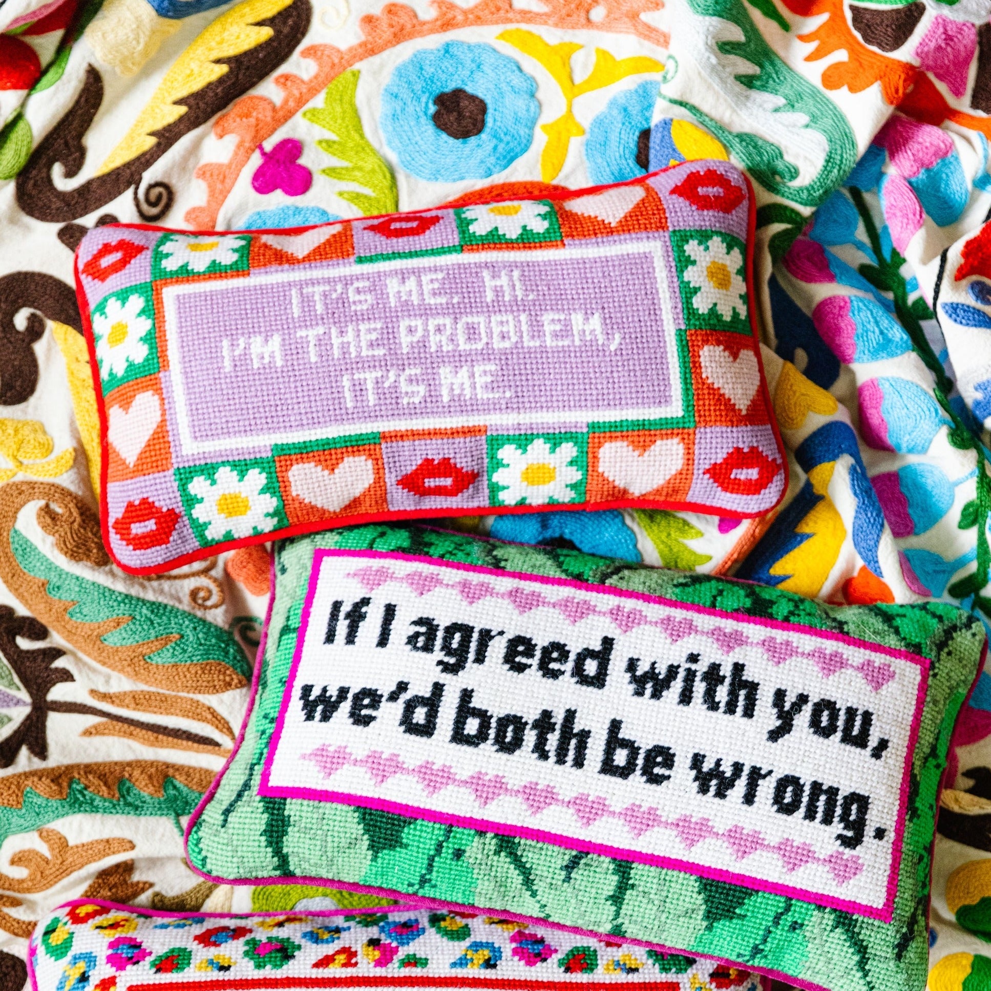 - Hand embroidered in wool and backed in luxe red velvet, we've revived this Southern staple with sayings that are sure to get a smile.