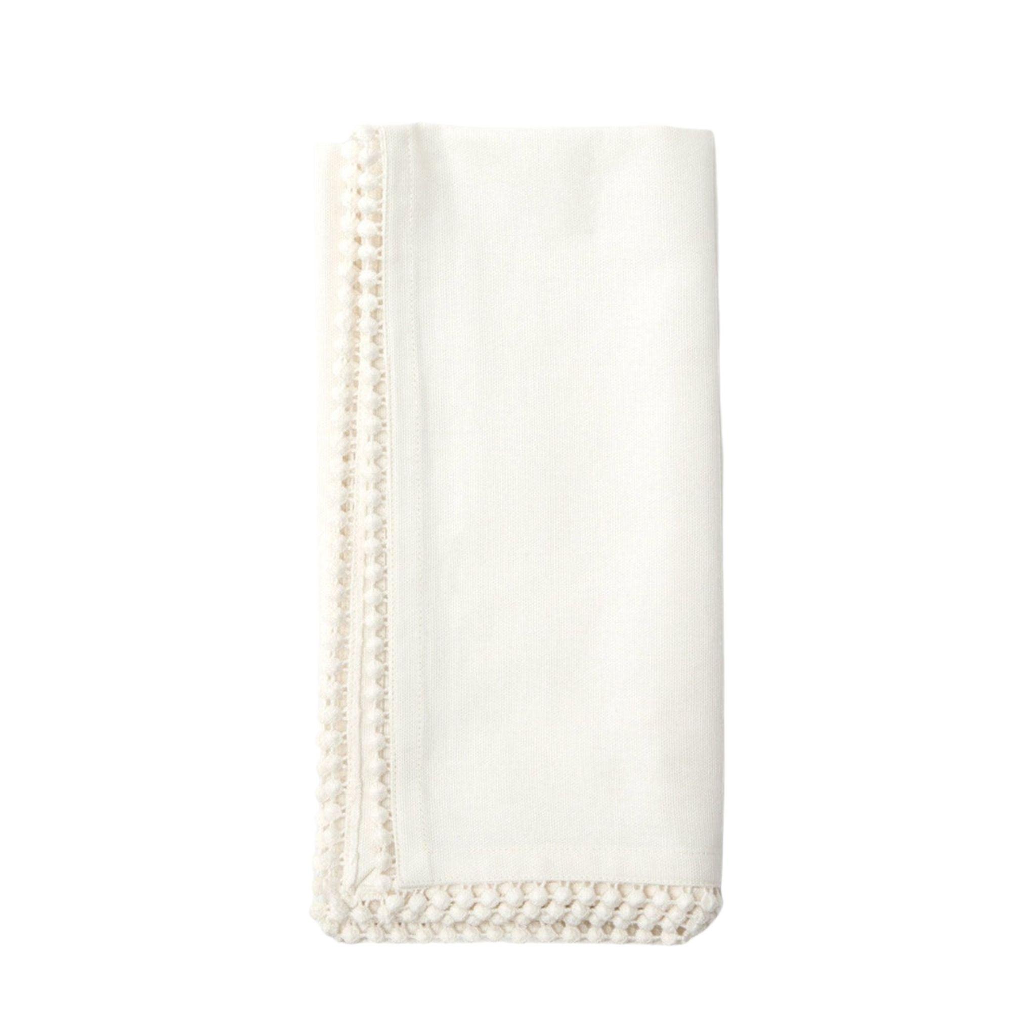 These napkins add feminine flair to any party. Make luncheons lovelier and cocktail hours cooler with the pom pom border of this cotton canvas collection.