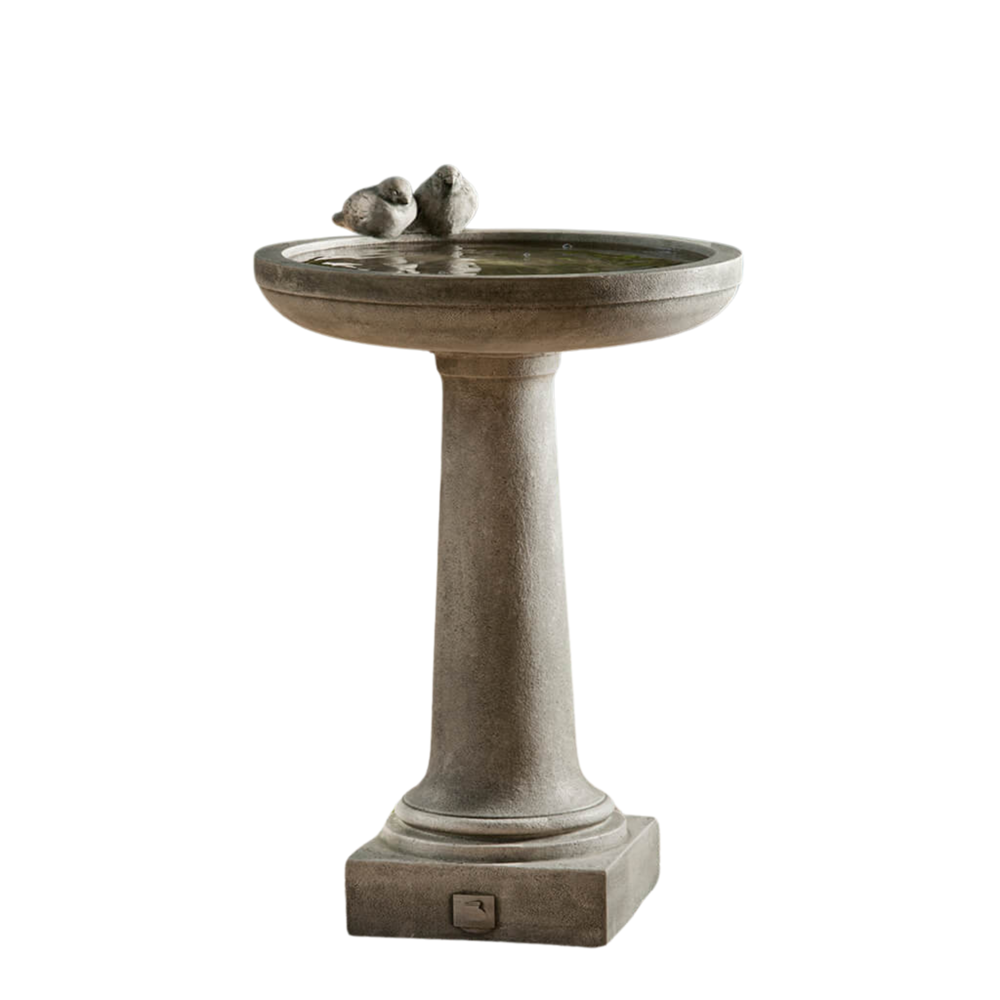 - Care Instructions: We suggest that birdbath/fountain tops not be left outside in the winter. Once the top fills with water/snow and freezes, the top may crack. All birdbath/fountain bases, bench legs and statuary should be raised up off the ground in winter so they will not freeze to the ground surface. Ideally, a fountain should be stored indoors in the winter away from the elements. However, if a fountain bowl must be left outside, remove all pumps, rubber stoppers, drain pipes, finials and small components, and cover the top with burlap or any absorbent material (old blanket/towel) and then wrapped with dark plastic, making sure that water does not accumulate in the basin and freeze. Fountain pumps, finials, and other small components should be stored indoors. Check the fountain periodically to insure that the cover is secure and water is not accumulating in any fountain component.