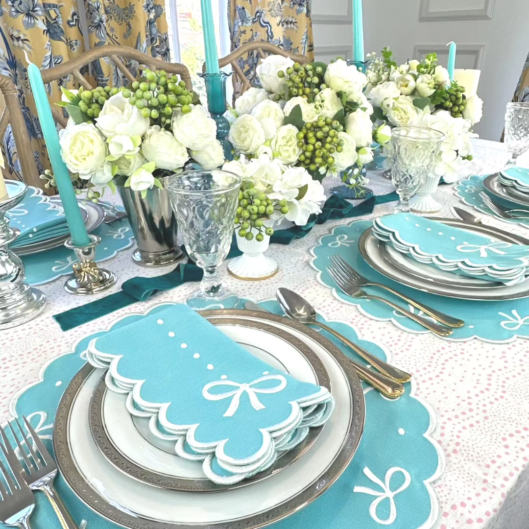 Juliet Bows Placemat in Robin Egg Blue, Set of 4