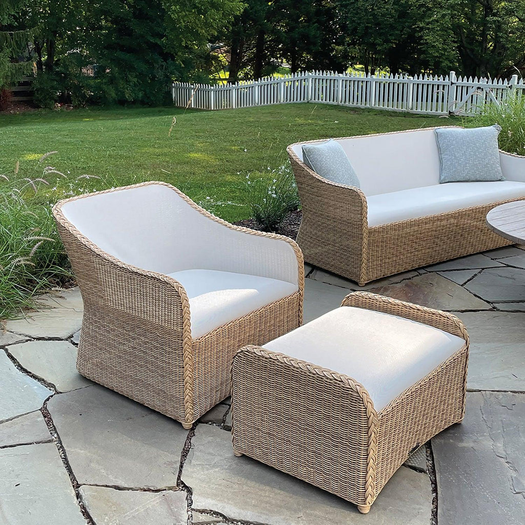 Bring comfort and style to your outdoor spaces with the Quogue collection! The Quogue collection combines all-weather wicker with a modern upholstered seating surface, eliminating the need for a cushion.