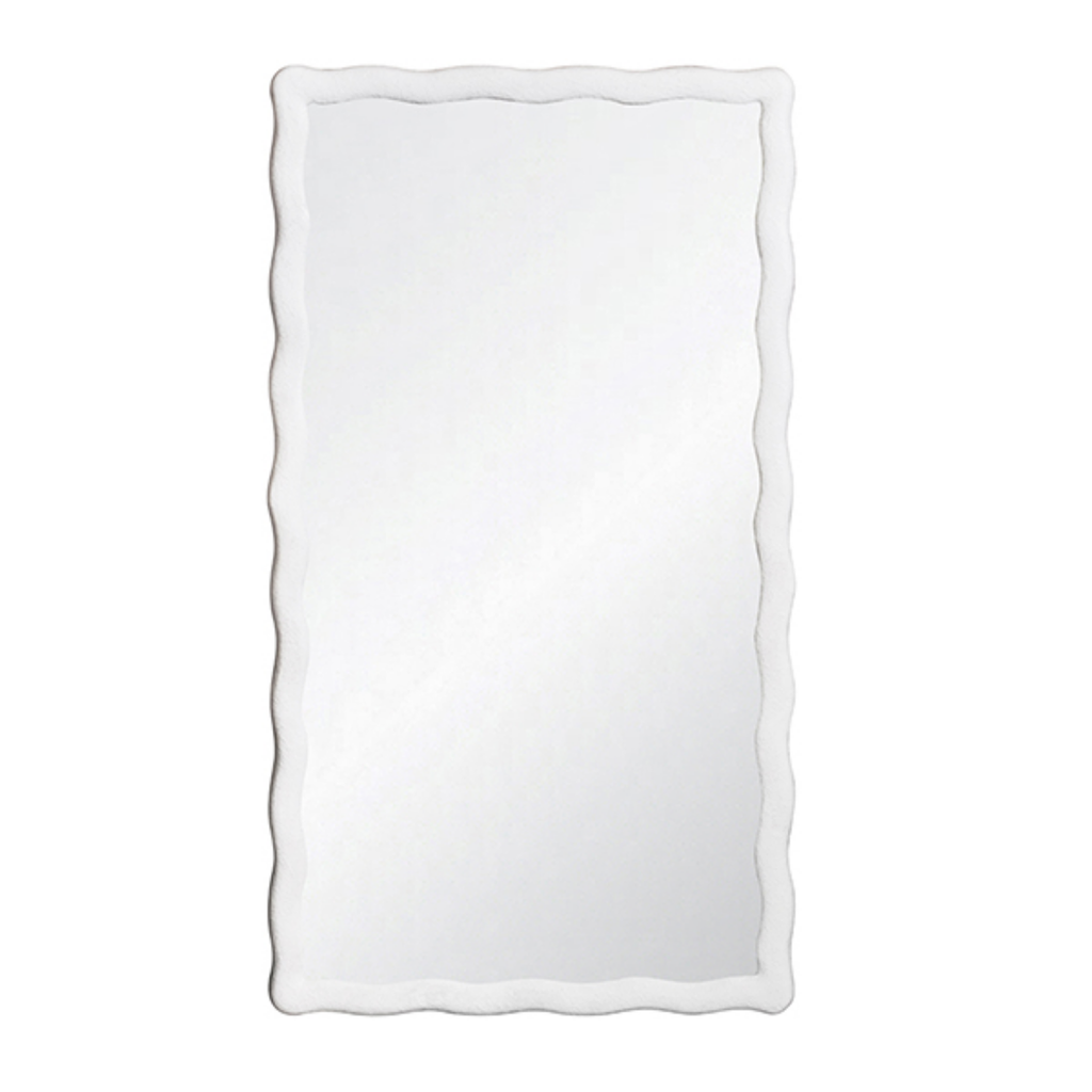 Rectangular mirror with wavy textured metal frame.