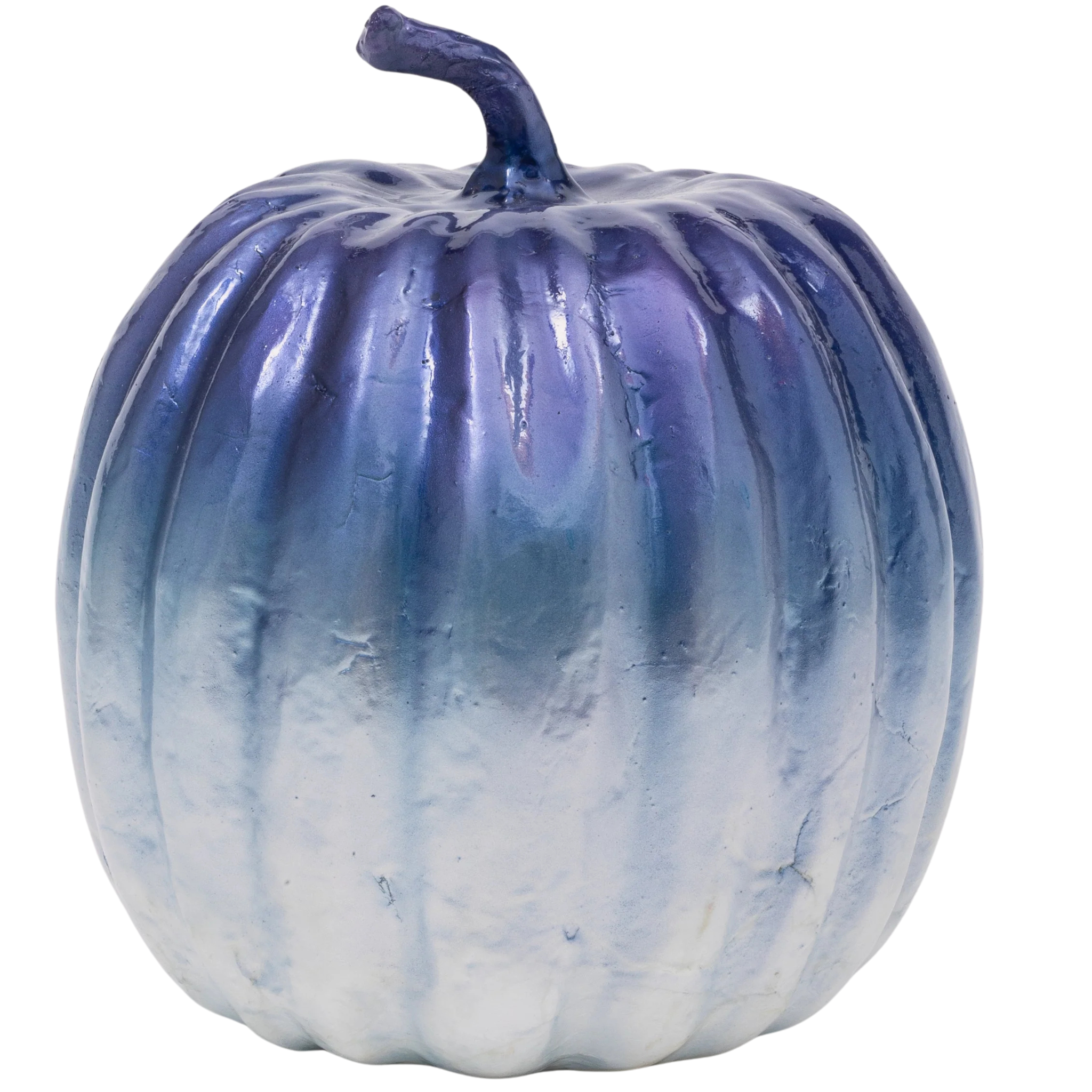 Bring a touch of autumnal elegance to your décor with the Capiz Pumpkin in Blue Ombre. Handcrafted from delicate capiz shell, this pumpkin features a stunning gradient of blue hues, transitioning from light to deep tones for a sophisticated, modern twist on a classic fall symbol. The soft, iridescent sheen of the capiz gives it a subtle glow, making it a perfect centerpiece or accent for your seasonal table settings, mantelpiece, or cozy gatherings.