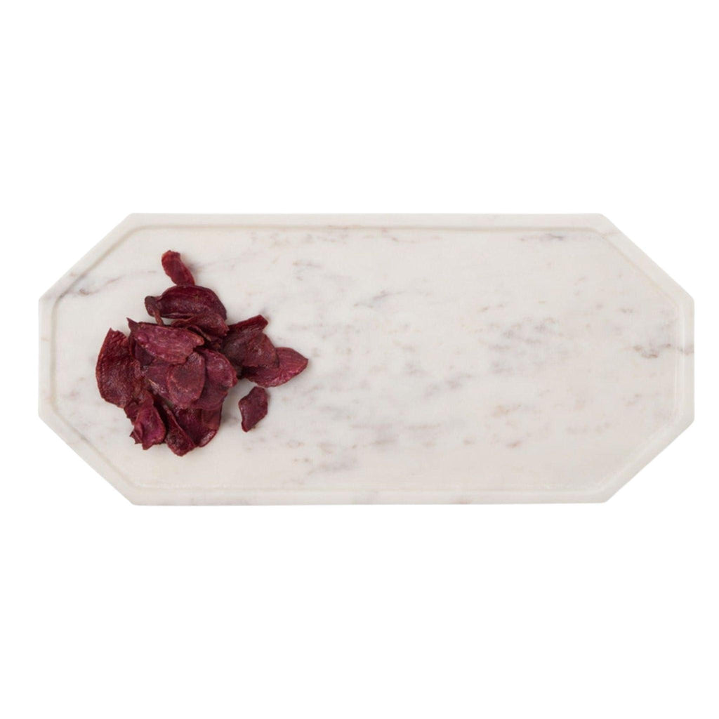 Elegant and moody, our tray is diagonally cut from Italian marble with naturally dark and stormy-looking lines. This angular tray is an ideal platform for still-life-worthy fruit and cheese spreads at the table or any small objects worthy of display.