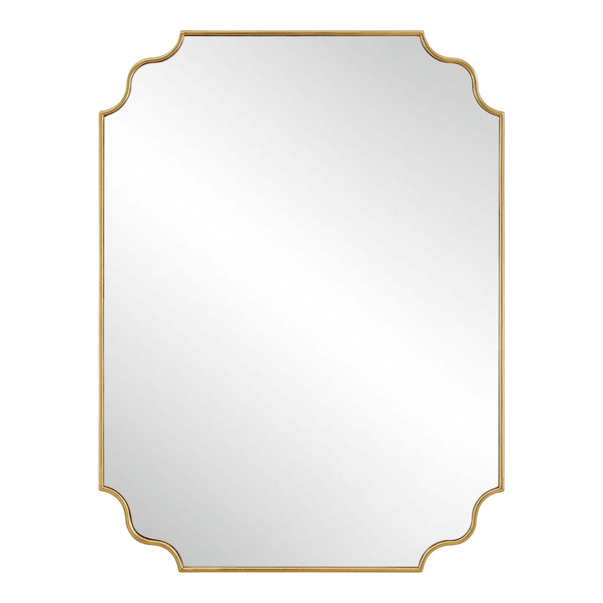 The Lennyn Mirror features a petite, gracefully curved frame finished in lightly antiqued gold leaf for a timeless, elegant look. Designed to hang either vertically or horizontally, it adds refined charm to living rooms, bedrooms, or entryways.