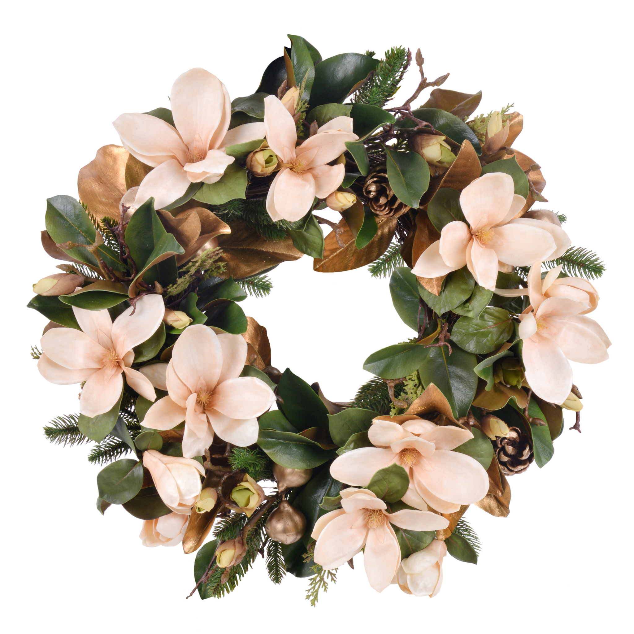 Magnolia Leaves and Flowers Holiday Wreath 26"