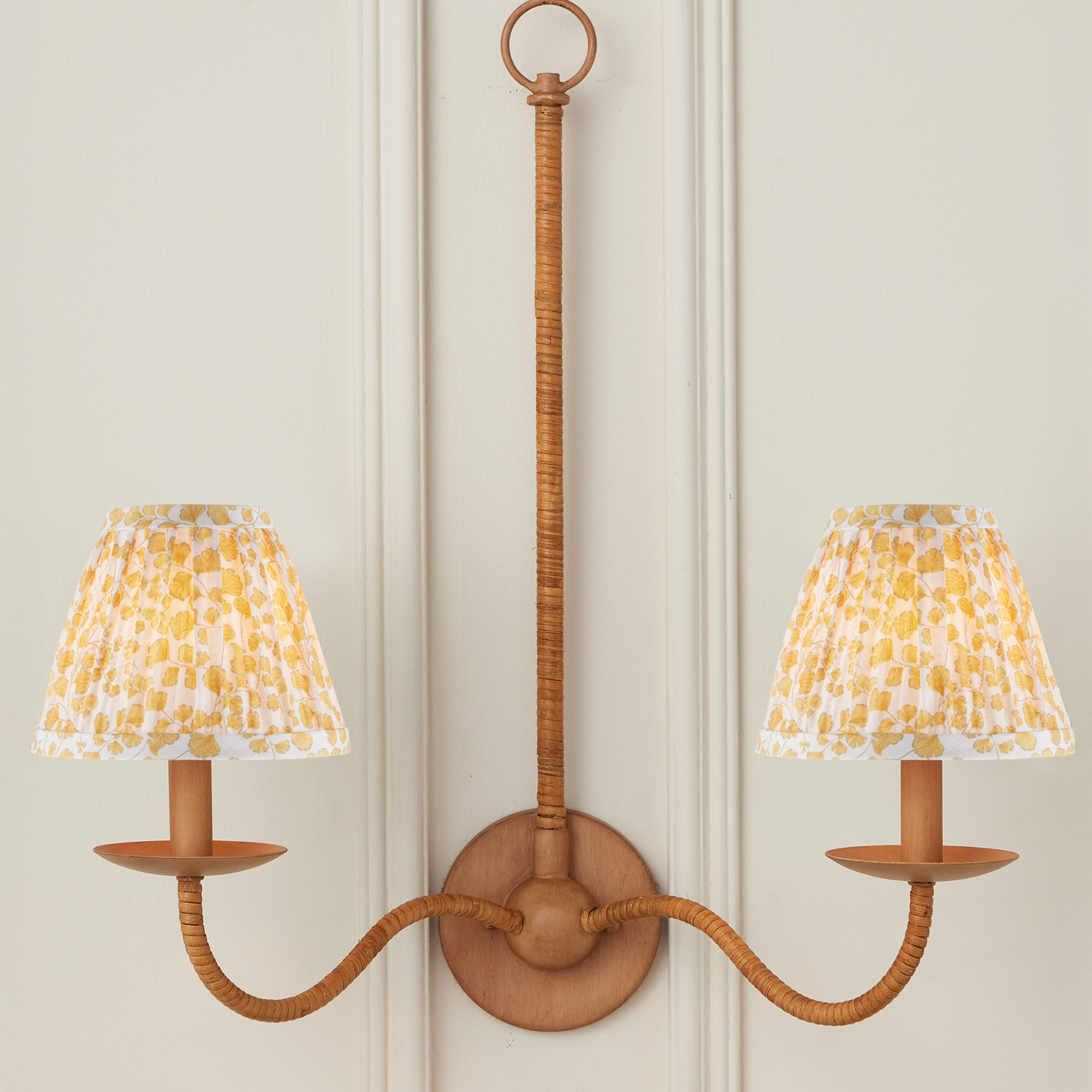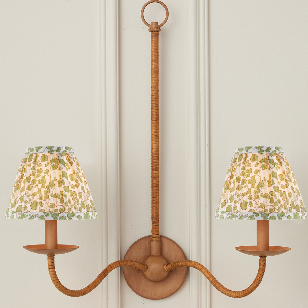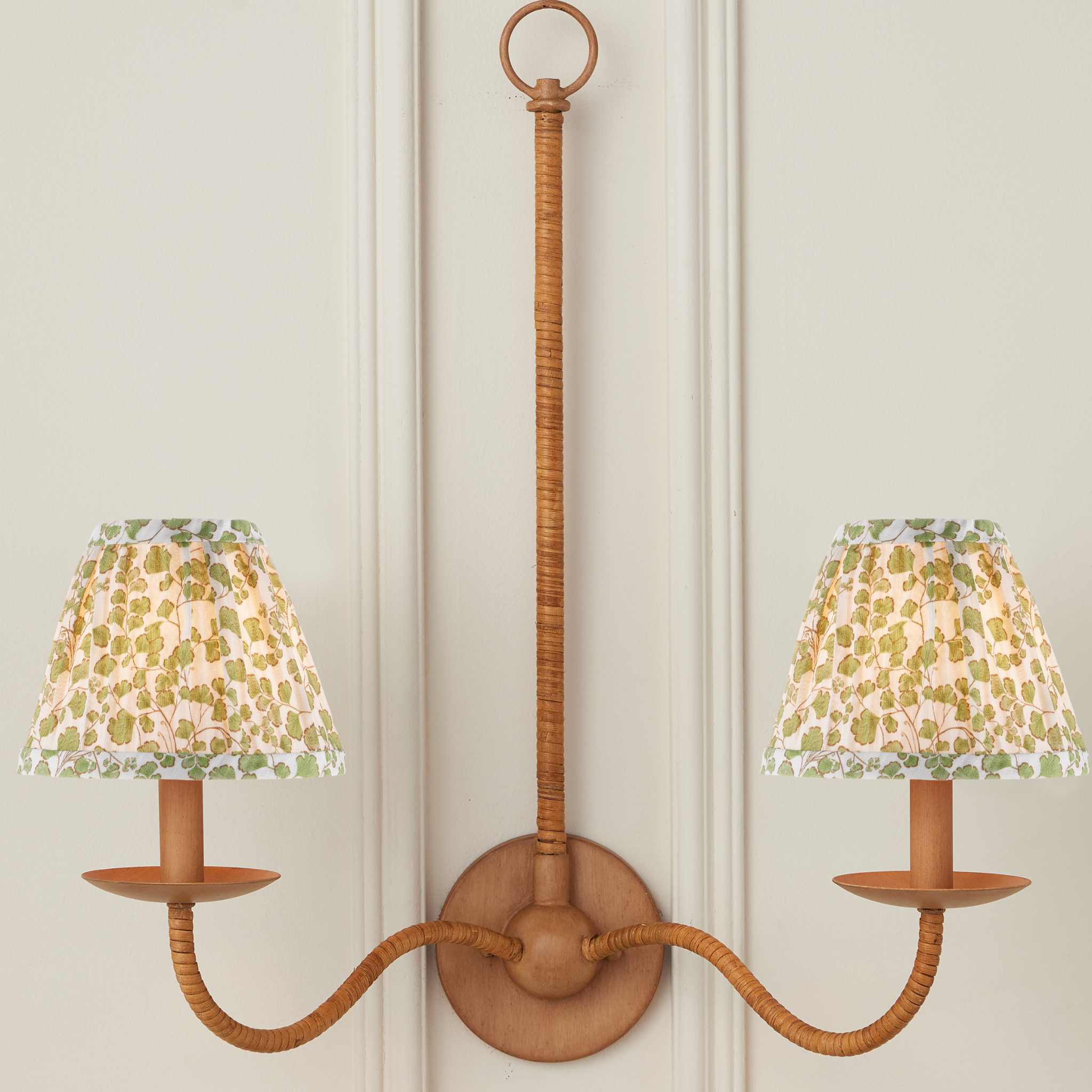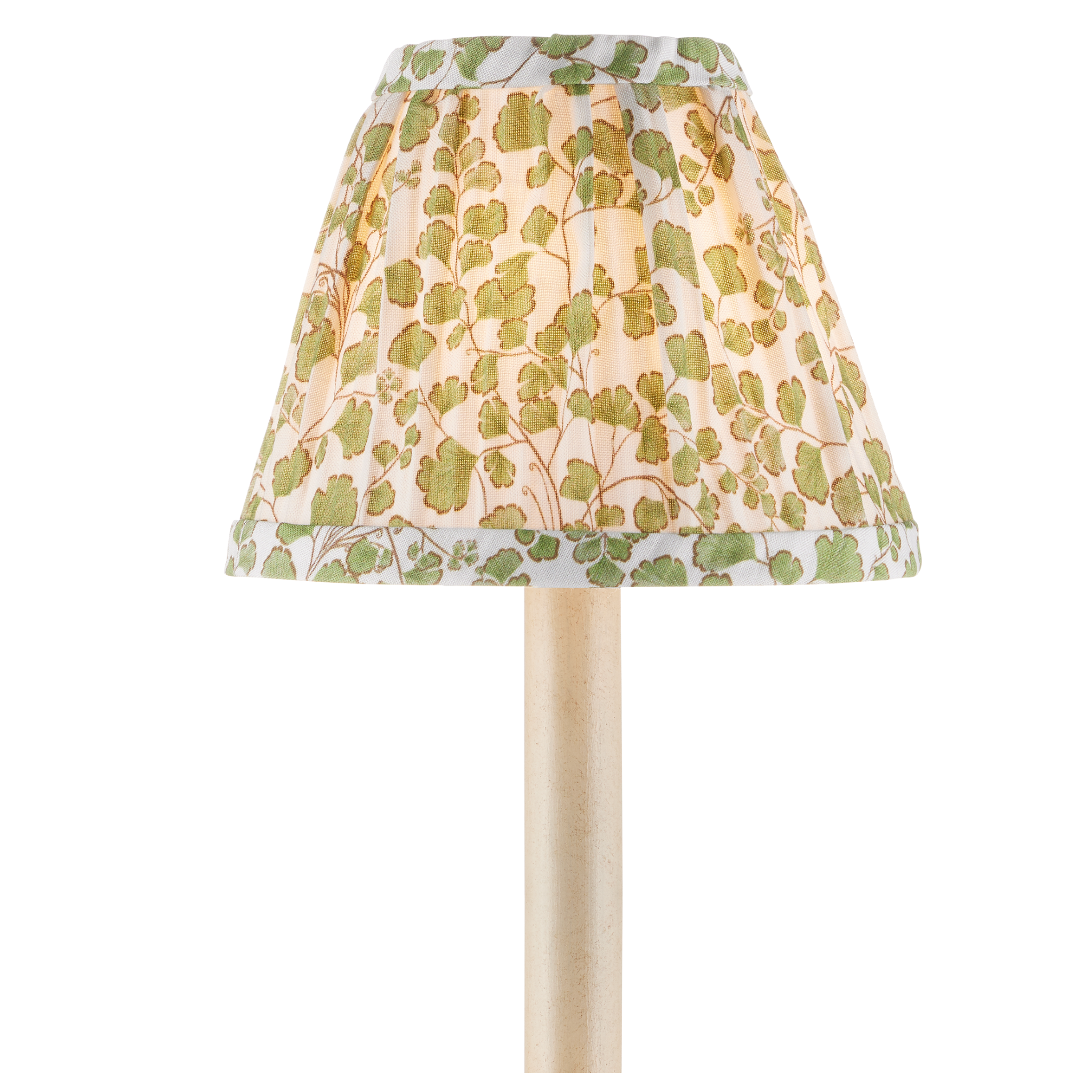 Add a splash of green to a light fixture with this gingko-inspired fabric chandelier shade, tapered and pleated.